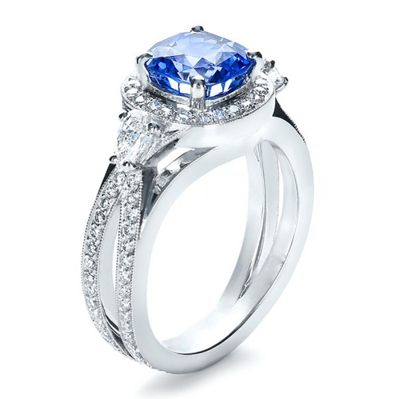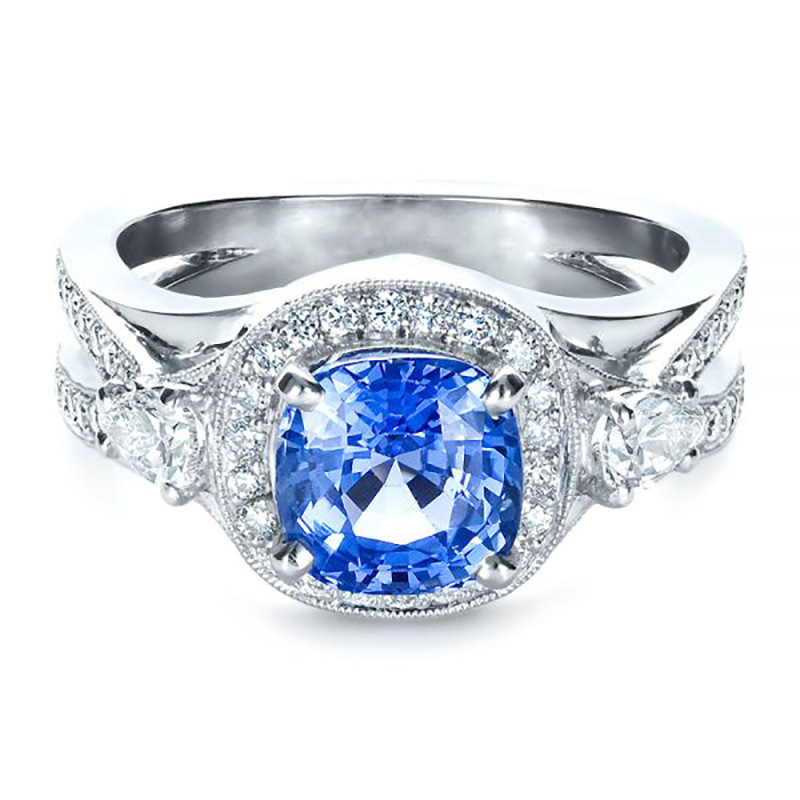 Hot selling European and American luxury sea blue engagement rings with micro-inlaid zircon accessories wholesale