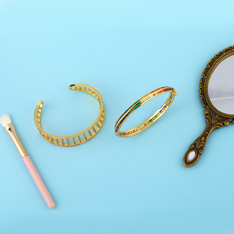 Hot selling European and American micro-inlaid colored zircon bracelet original personality exaggerated geometric diamond bracelet brc45