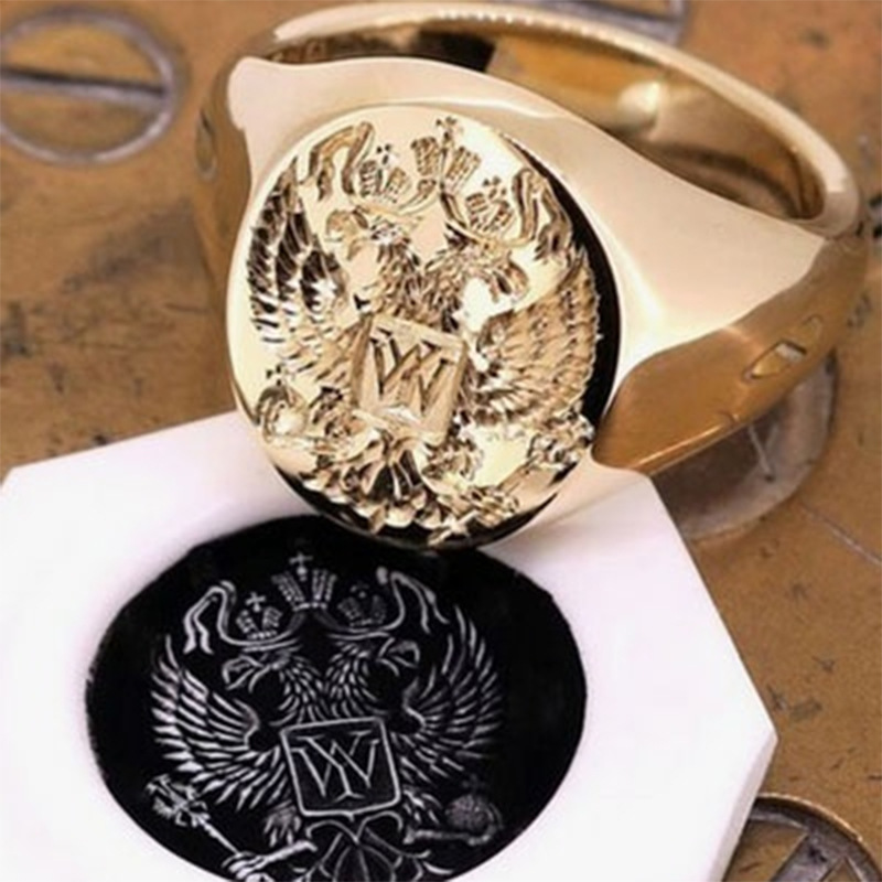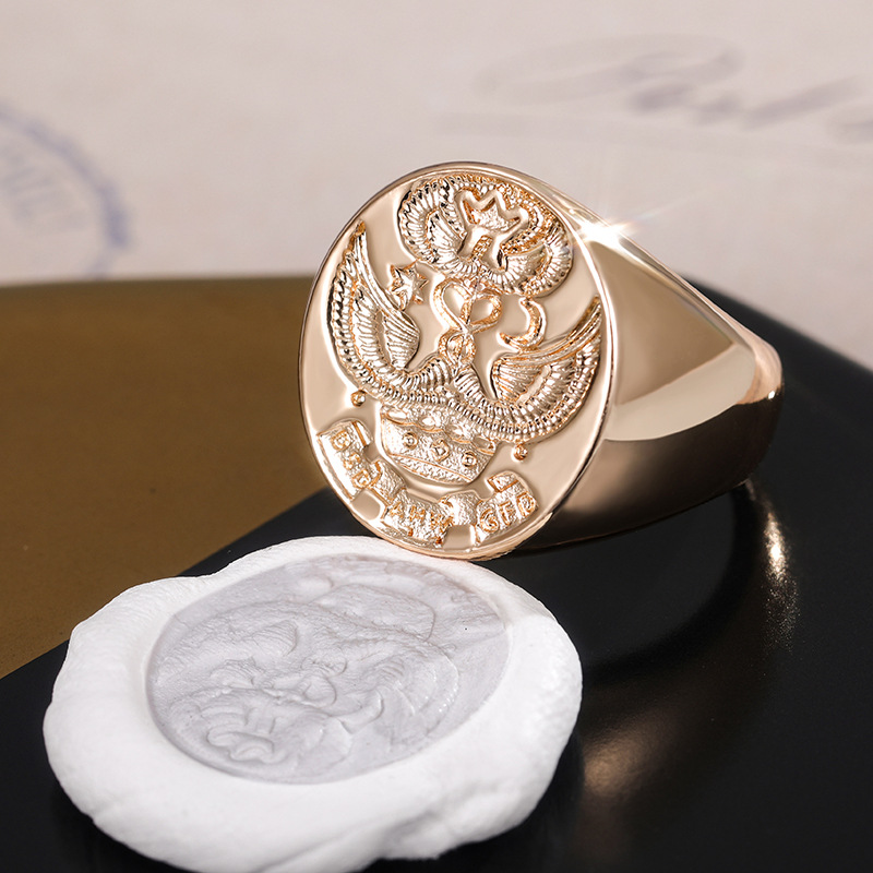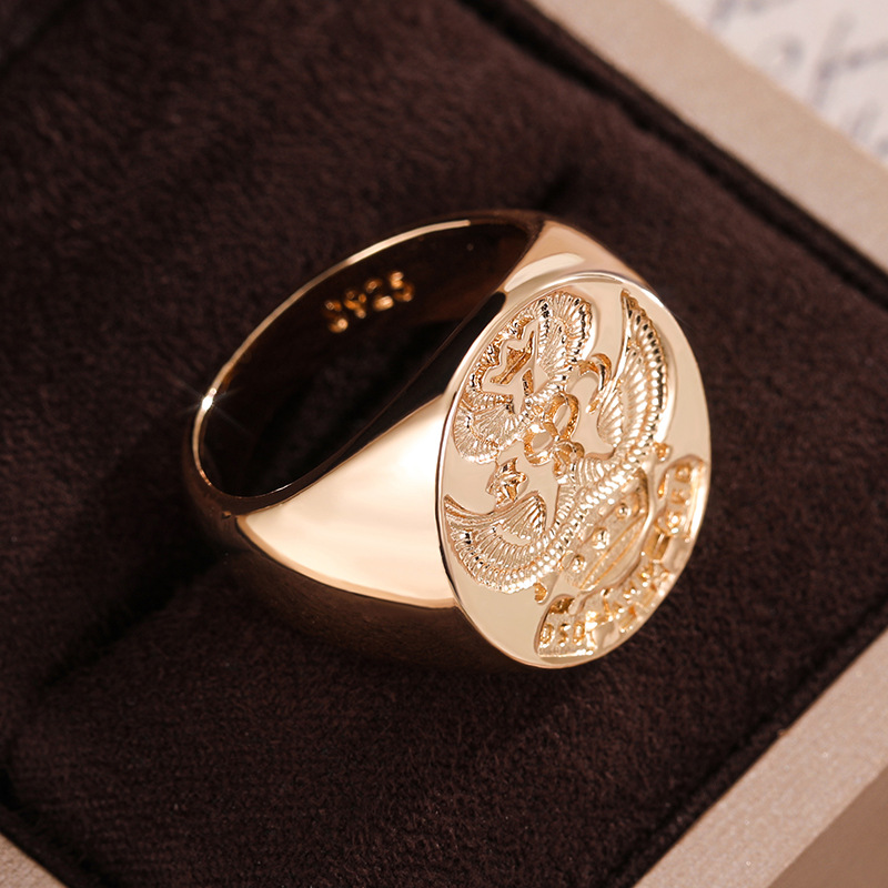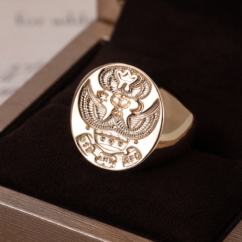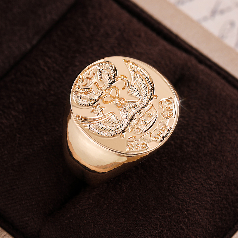 Hot selling European and American personalized alloy seal men's ring family emblem double-headed eagle ring