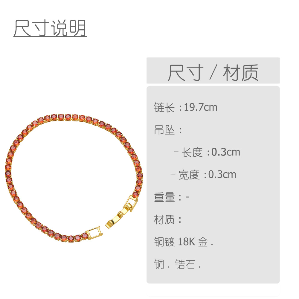 Hot selling European and American popular personality color zircon bracelet fashion all-match hip hop tennis chain wholesale brf79
