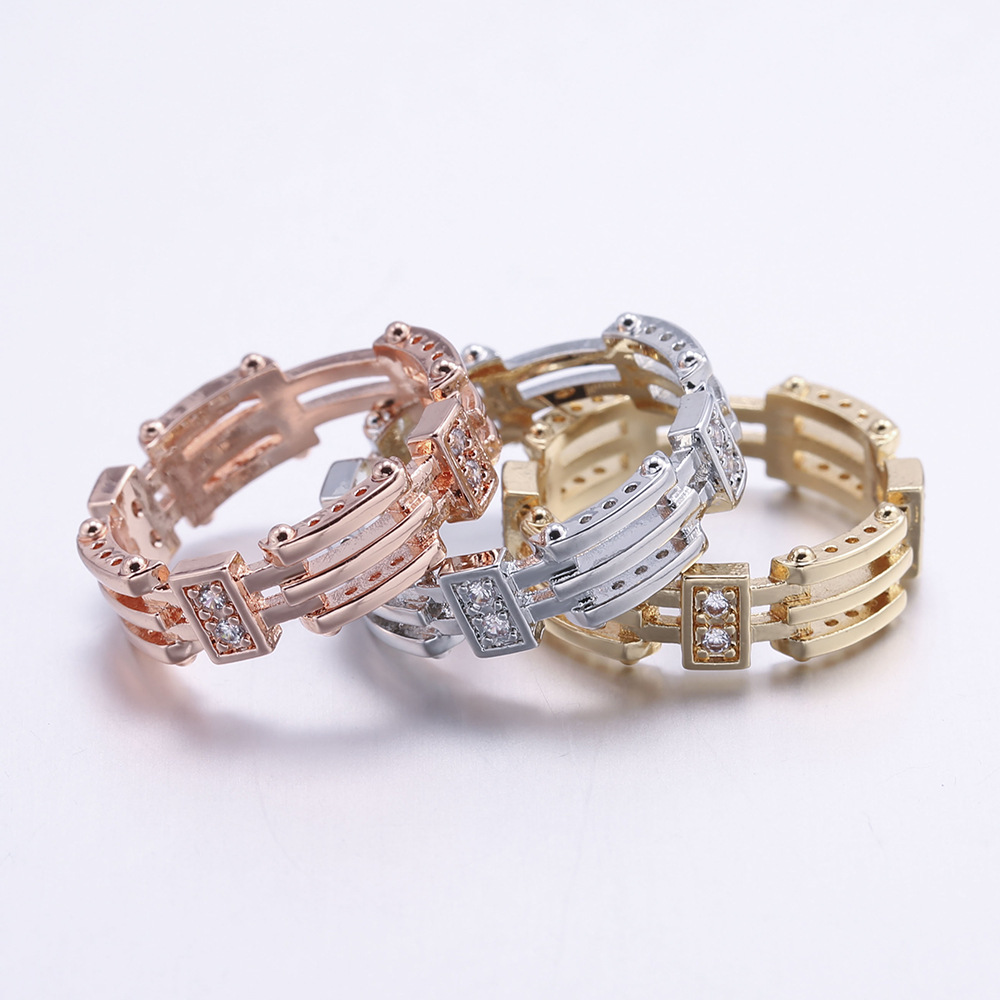 European and American luxury design ring fashionable temperament horse eye zircon ring multi-layer hollow design index finger ring
