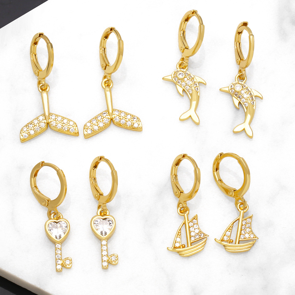 Hot selling European and American style earrings 18k gold ladies earrings with diamonds animal cartoon simple earrings ert98