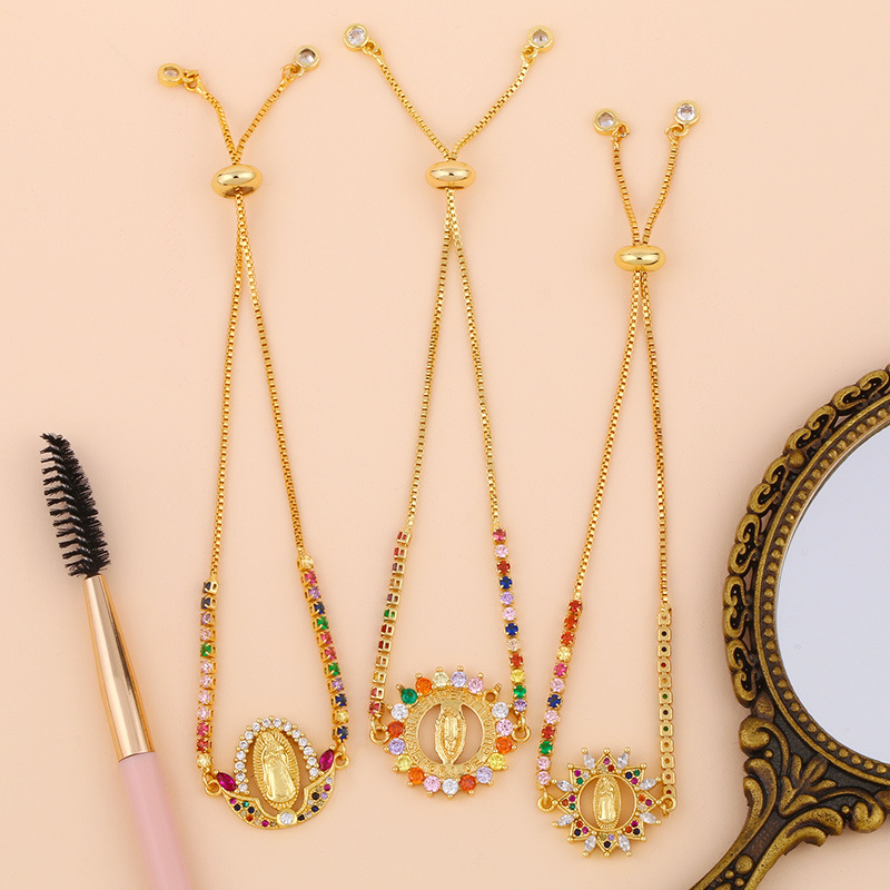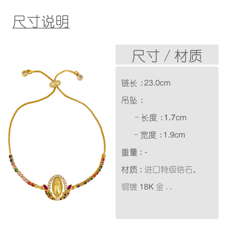 Hot selling European and American style inlaid colorful zircon Virgin Mary bracelet personalized fashion jewelry wholesale brc09