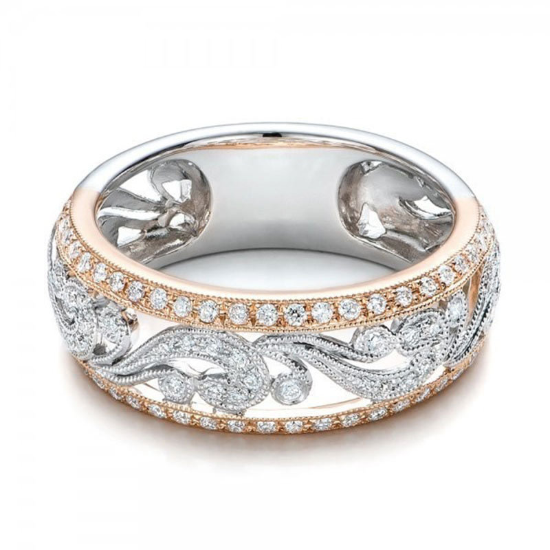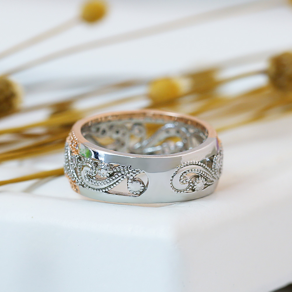 Hot-selling European and American style luxury hollow flower two-tone ring copper plated rose gold fashion popular ring for women