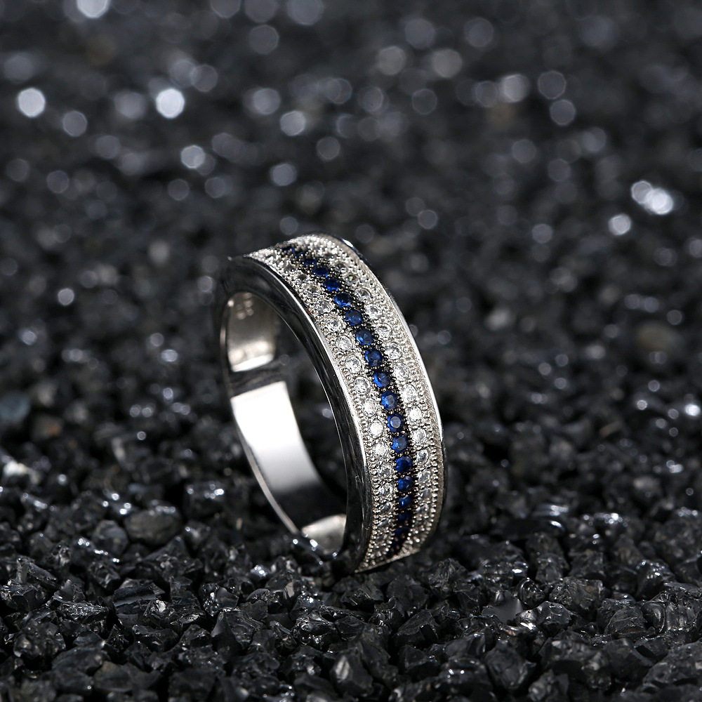 Hot selling European and American women's ring copper plated silver inlaid blue and white zircon engagement ring gift