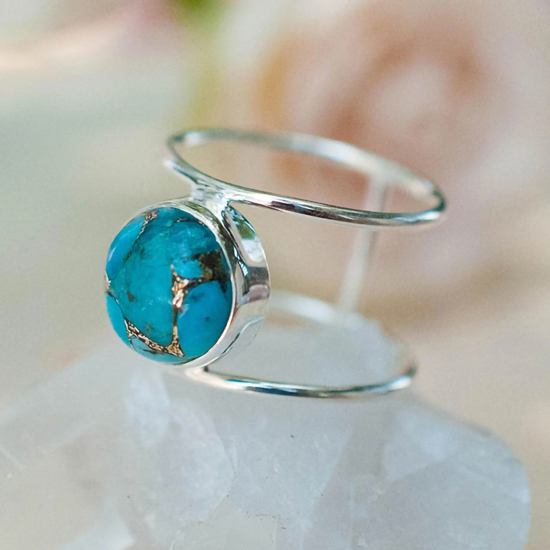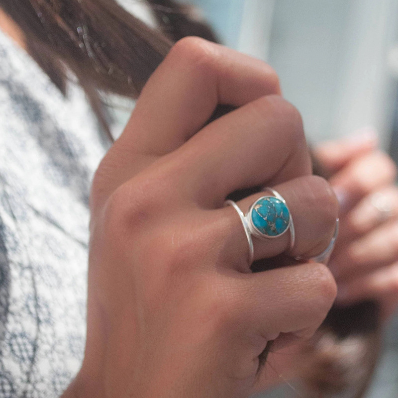 Hot selling European and American women's rings exaggerated round imitation large turquoise ring niche design hand jewelry