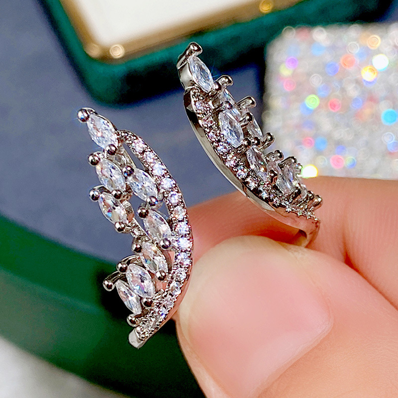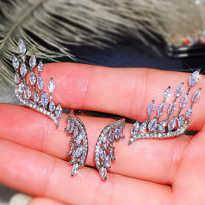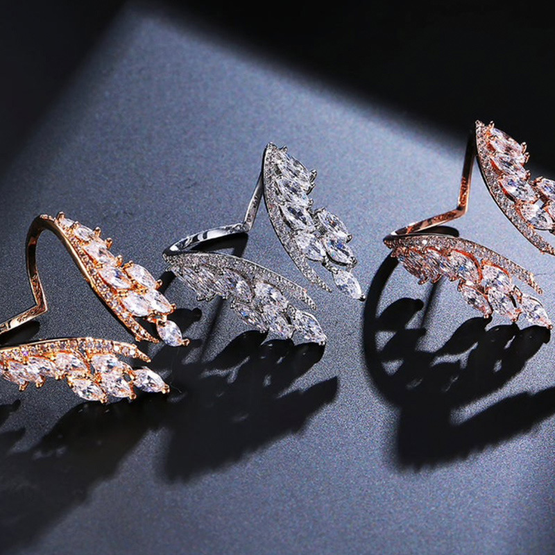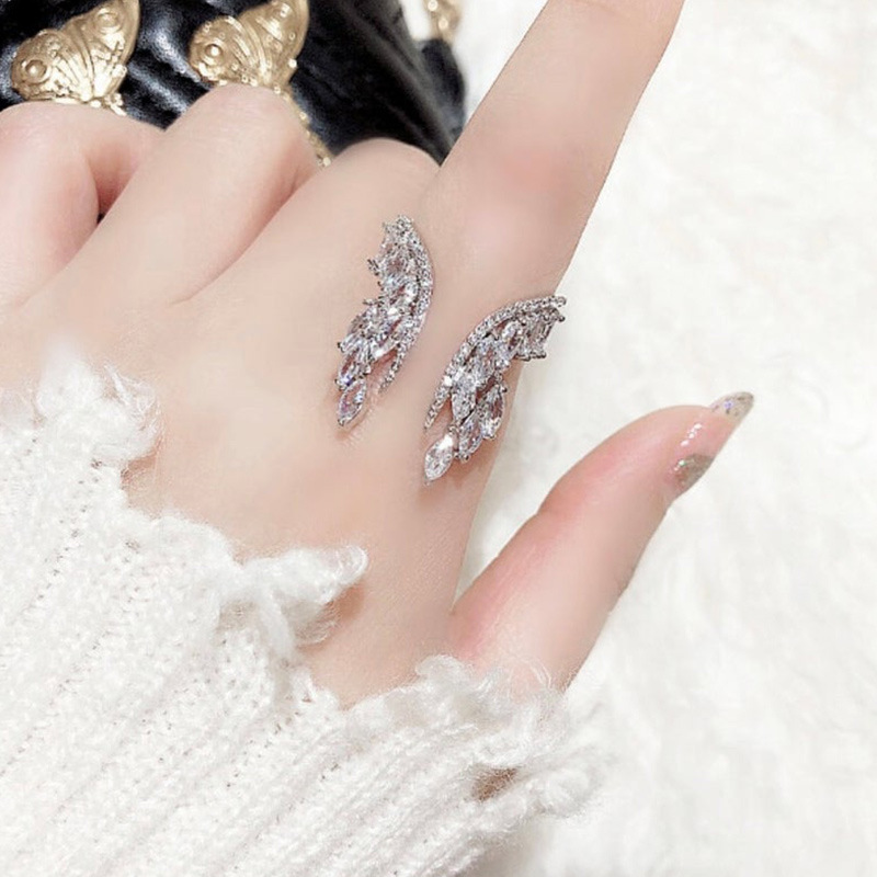 Hot selling exaggerated marquise diamond angel wings ring earrings jewelry adjustable women's ring