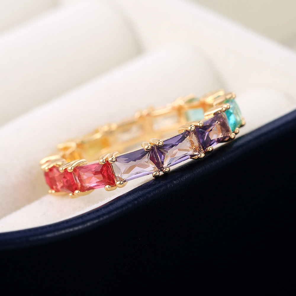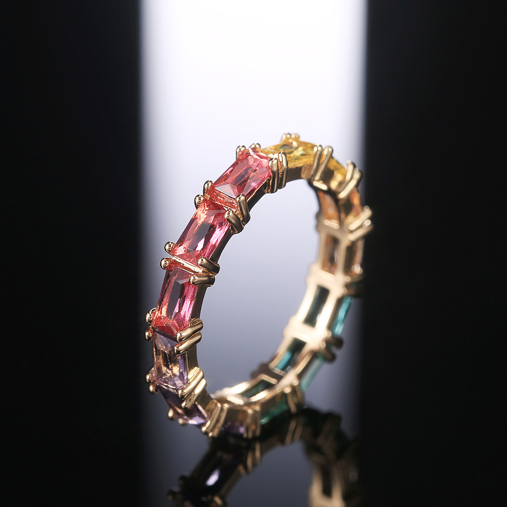 Hot selling exquisite and fashionable rainbow color zircon women's ring European and American e-commerce jewelry wholesale