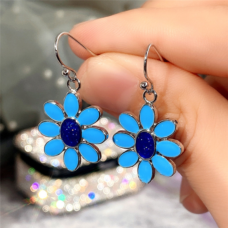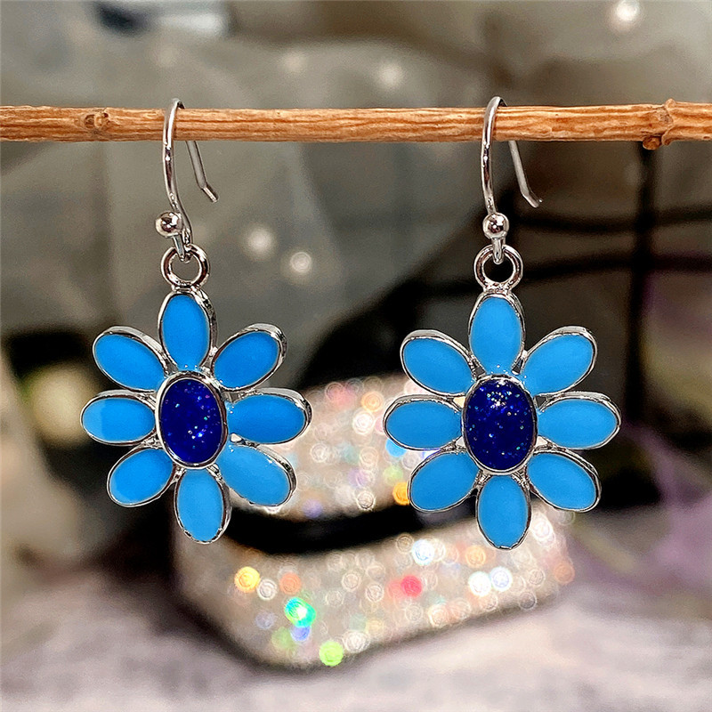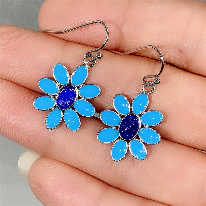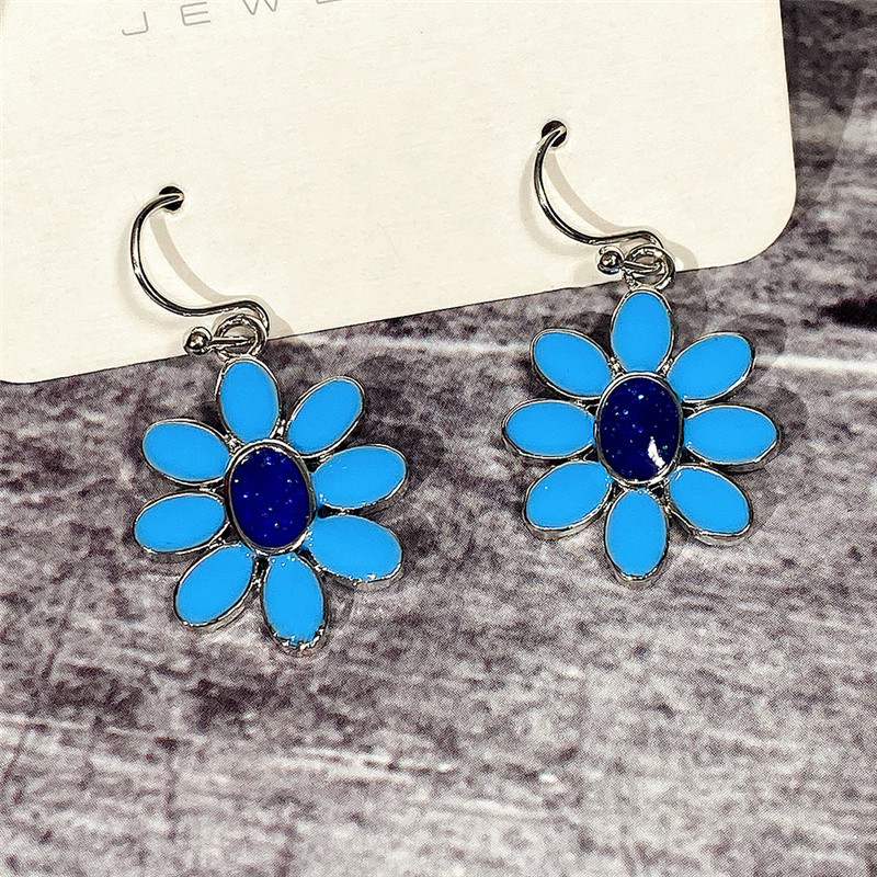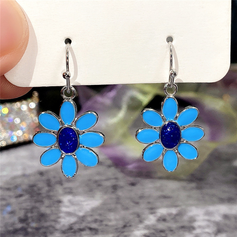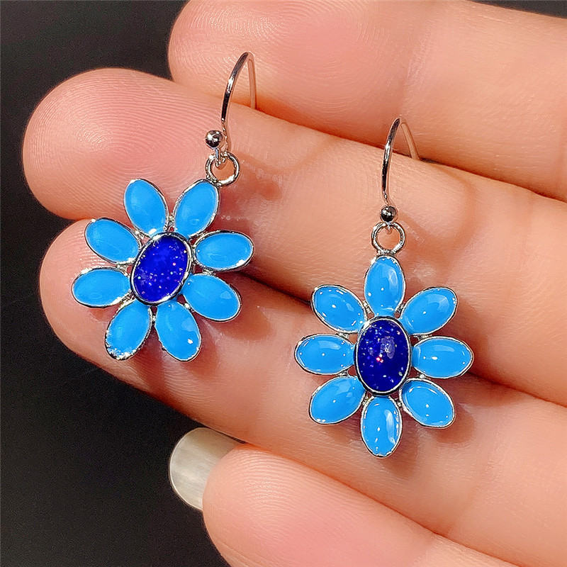 Hot selling exquisite blue flower earrings, European and American epoxy style, versatile earrings for women