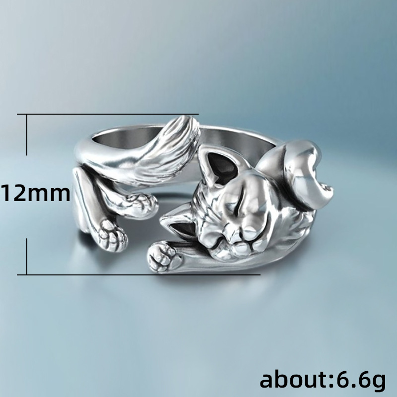 Hot selling exquisite copper plated silver kitten ring European and American fashion ladies hand jewelry wholesale