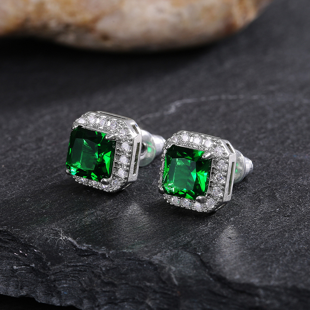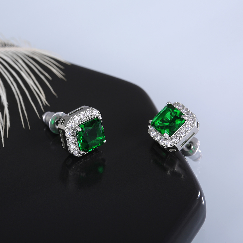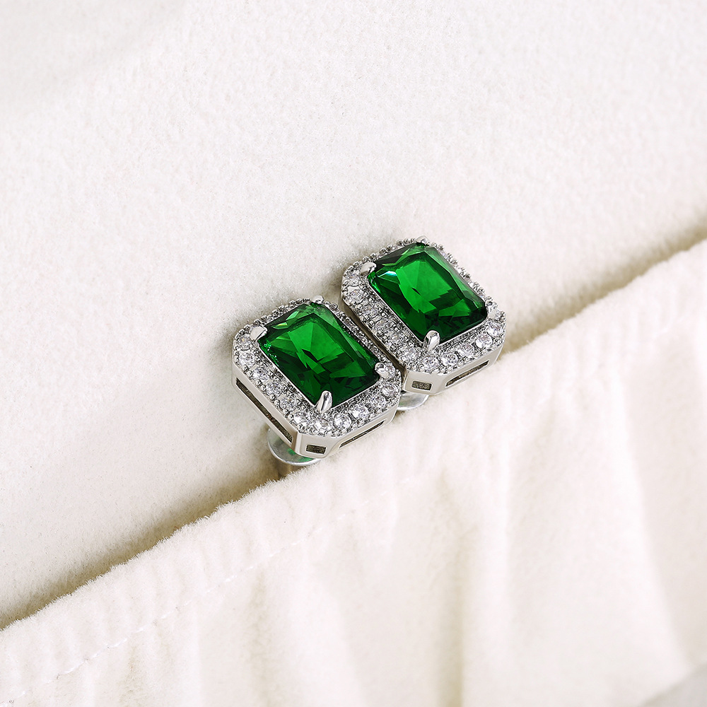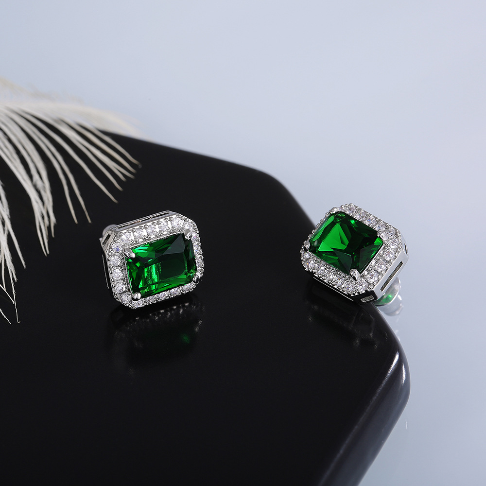 Hot selling exquisite square ladies earrings with full diamonds and green zircon earrings jewelry wholesale
