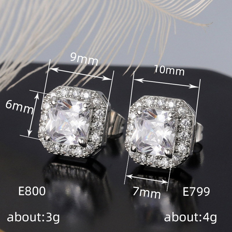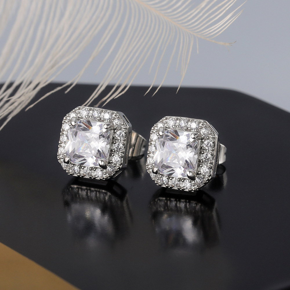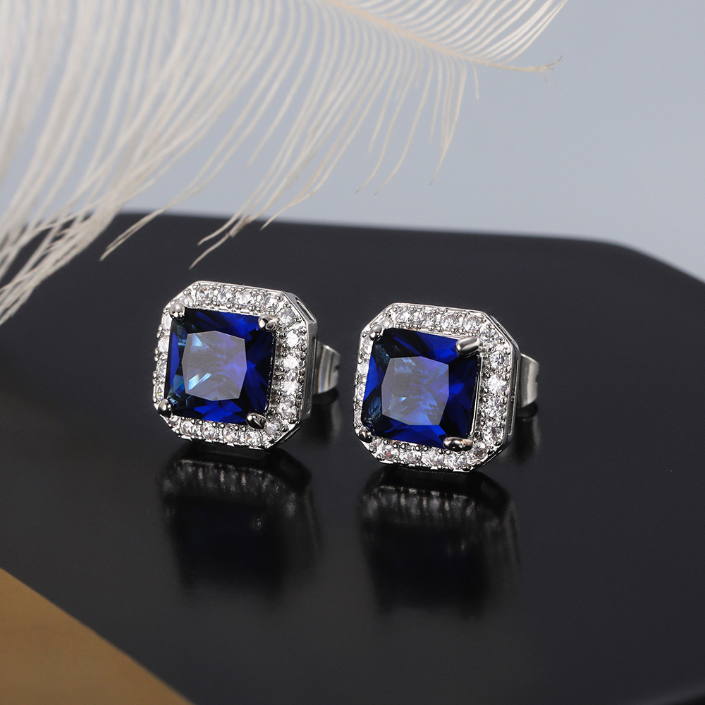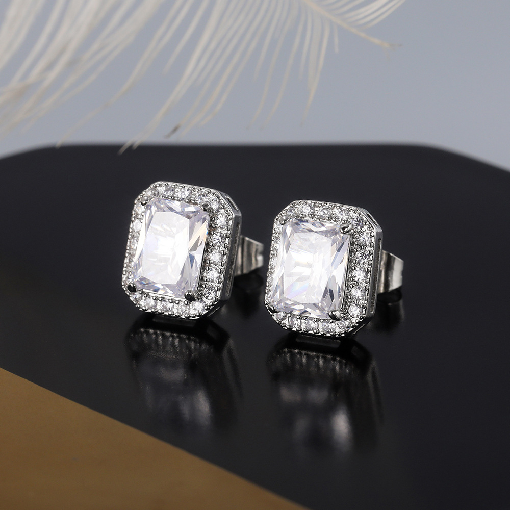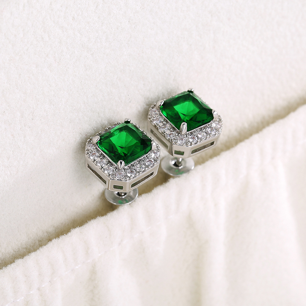 Hot selling exquisite square ladies earrings with full diamonds and green zircon earrings jewelry wholesale