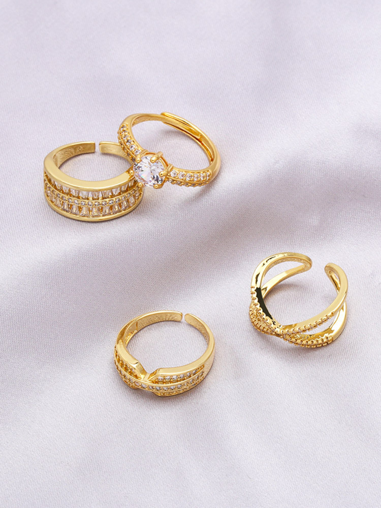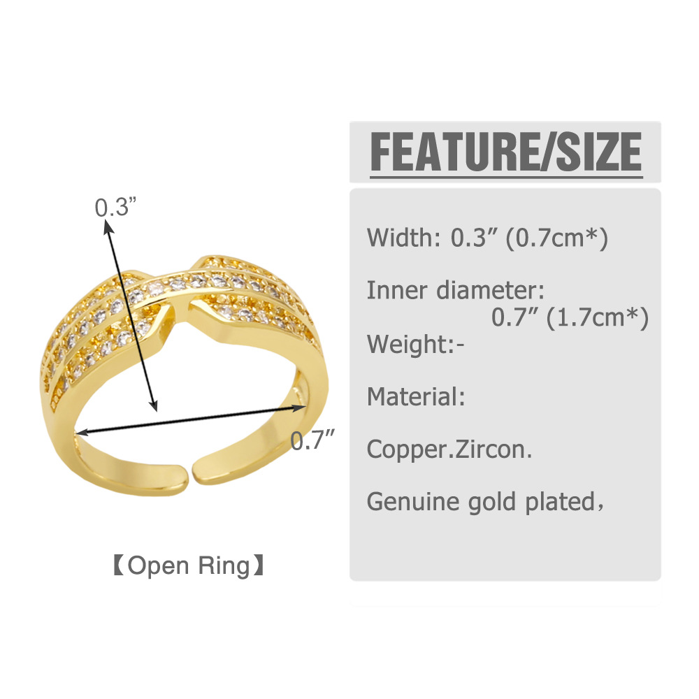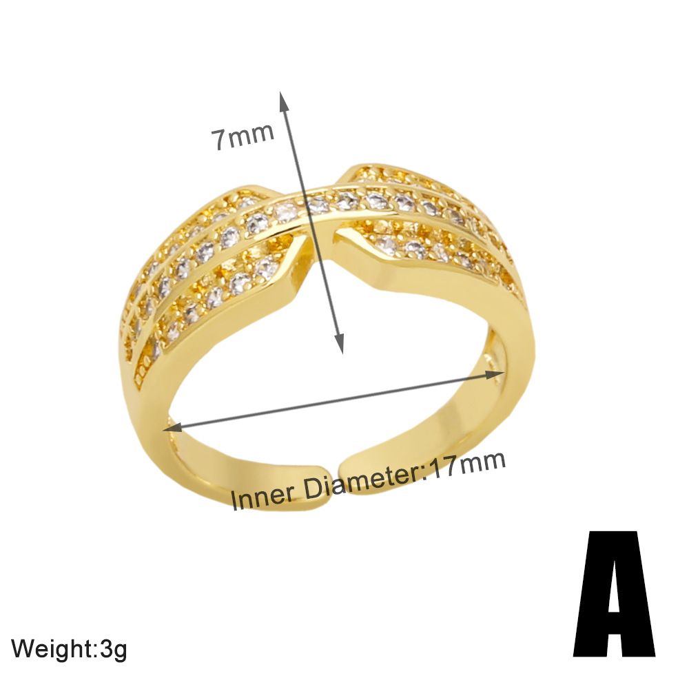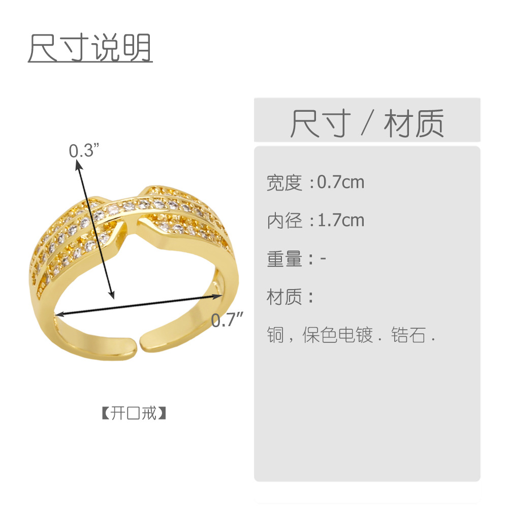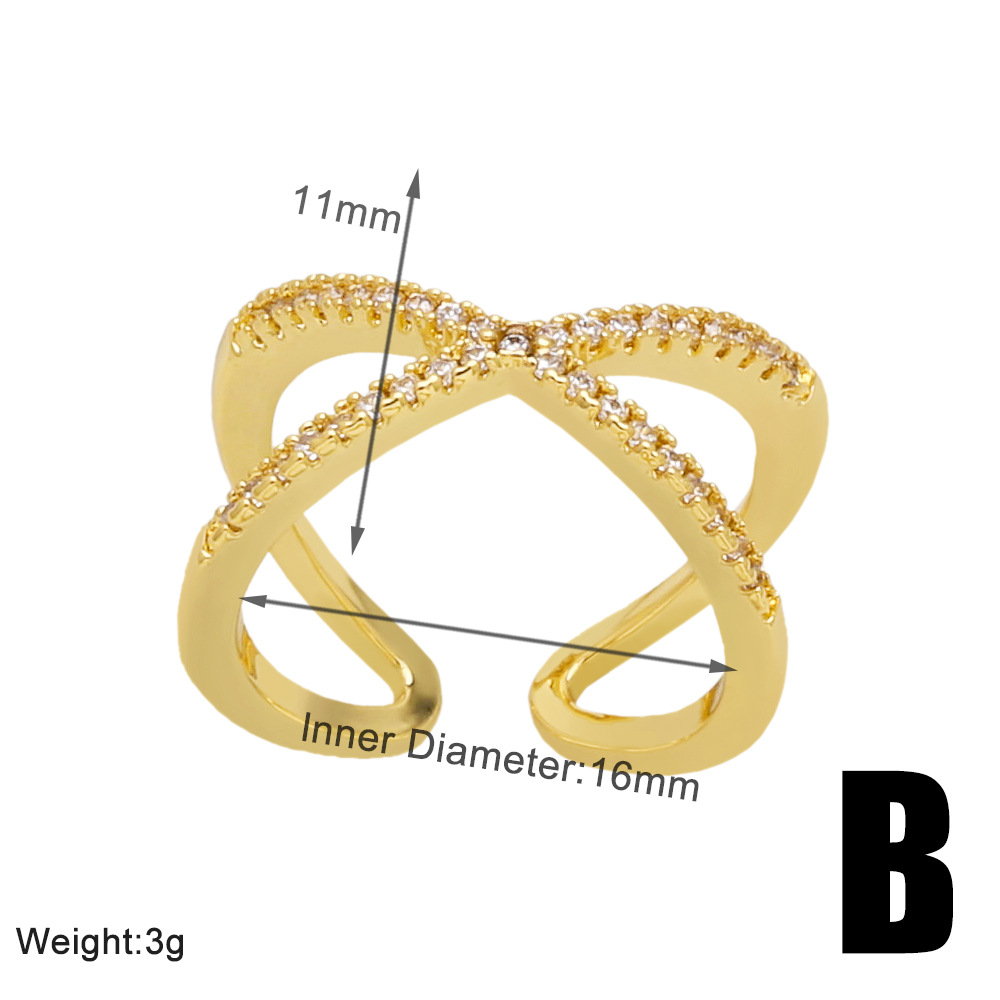 Hot selling fashion cross open ring female niche design inlaid zircon double layer ring rih83