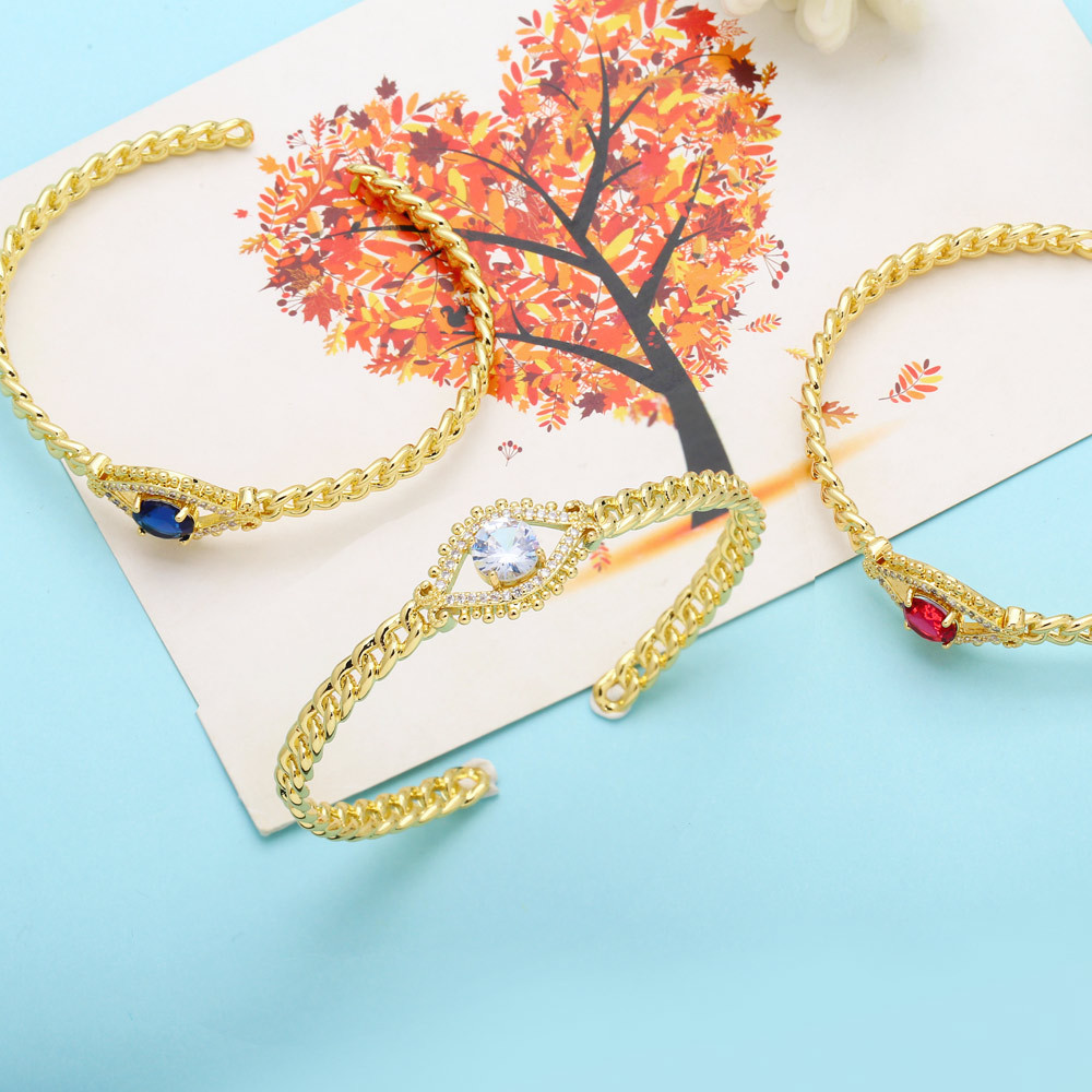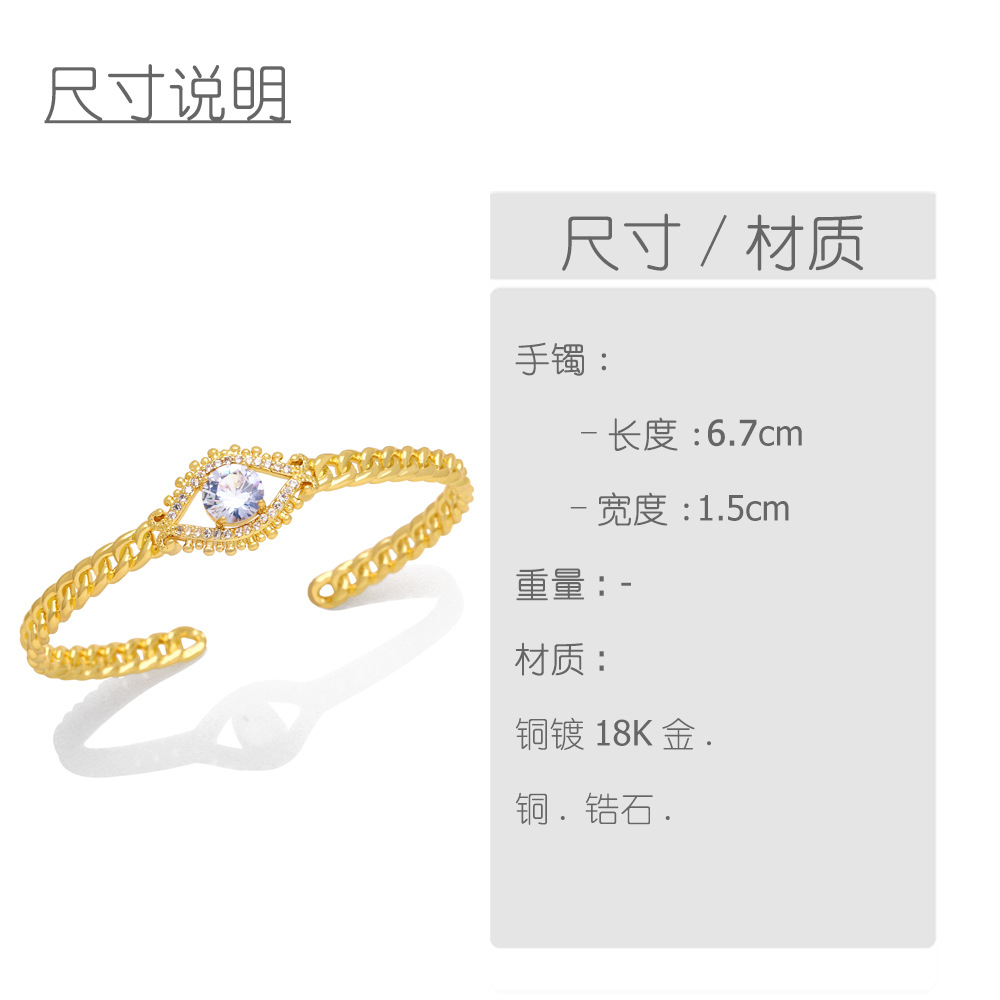 Hot selling fashion devil eye bracelet 18K gold plated open hand jewelry European and American zircon bracelet female brj73