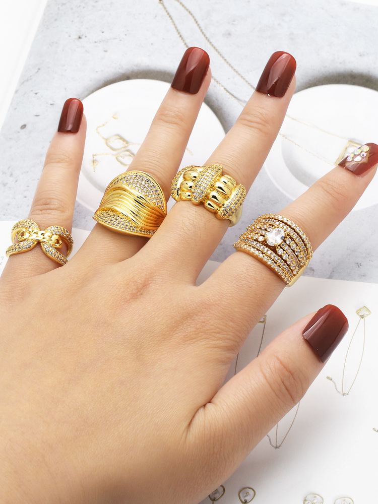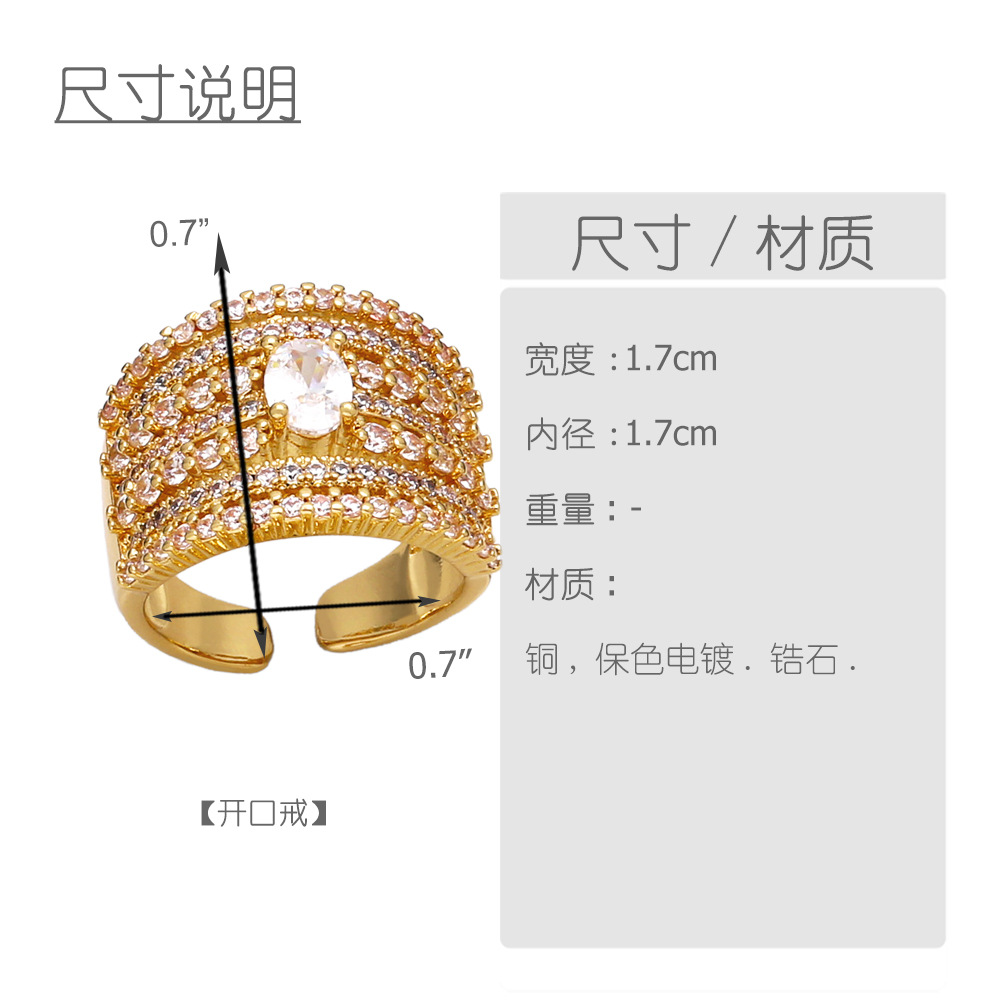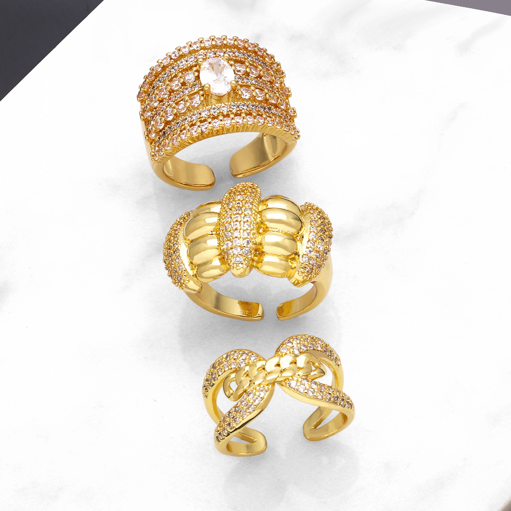 Hot selling fashion full diamond ring female light luxury high-end gold-plated irregular open ring rir02