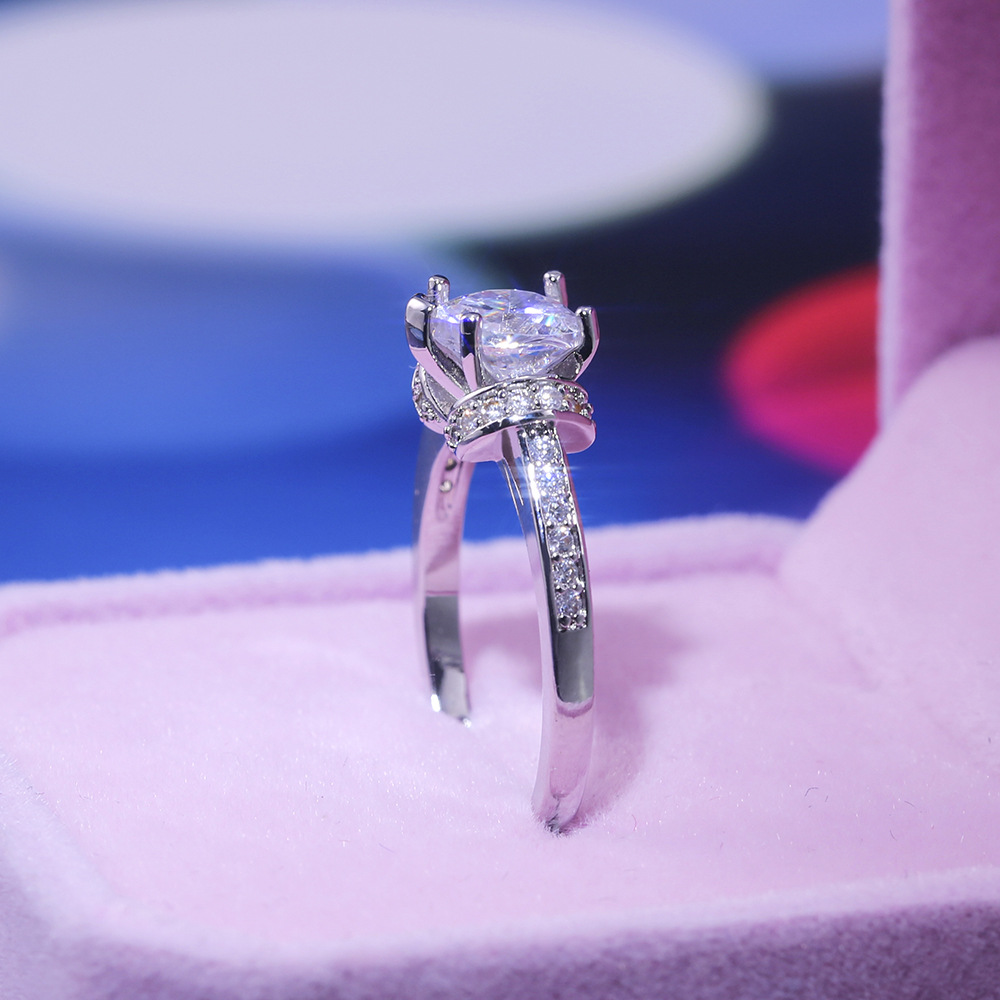 Micro-inlaid celebrity style classic all-match popular ring six-claw zircon wedding ring European and American style light luxury ring
