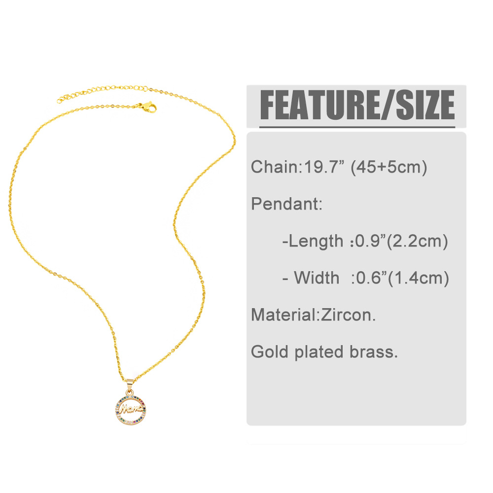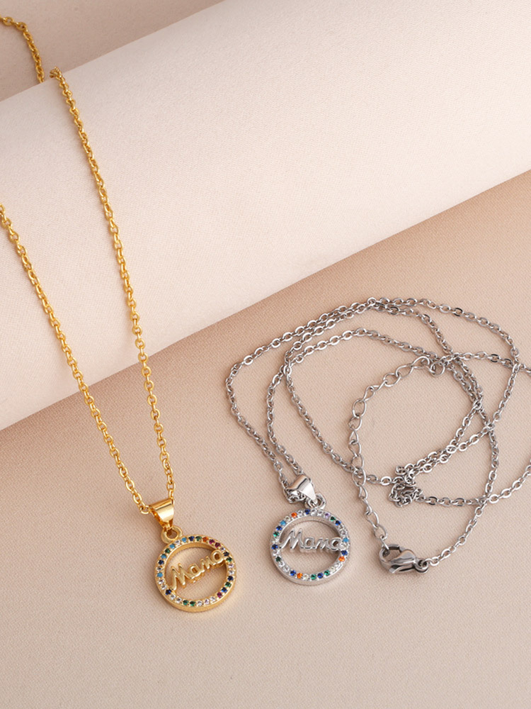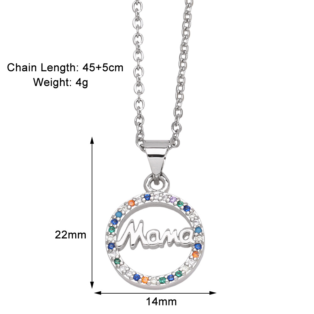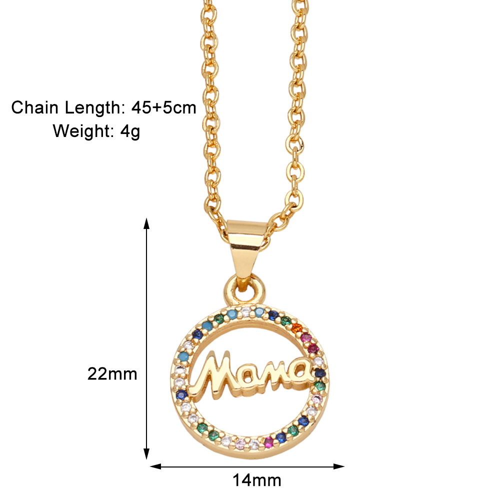 Hot selling fashion mama pendant necklace hip hop gold-plated colored zircon necklace nkb870