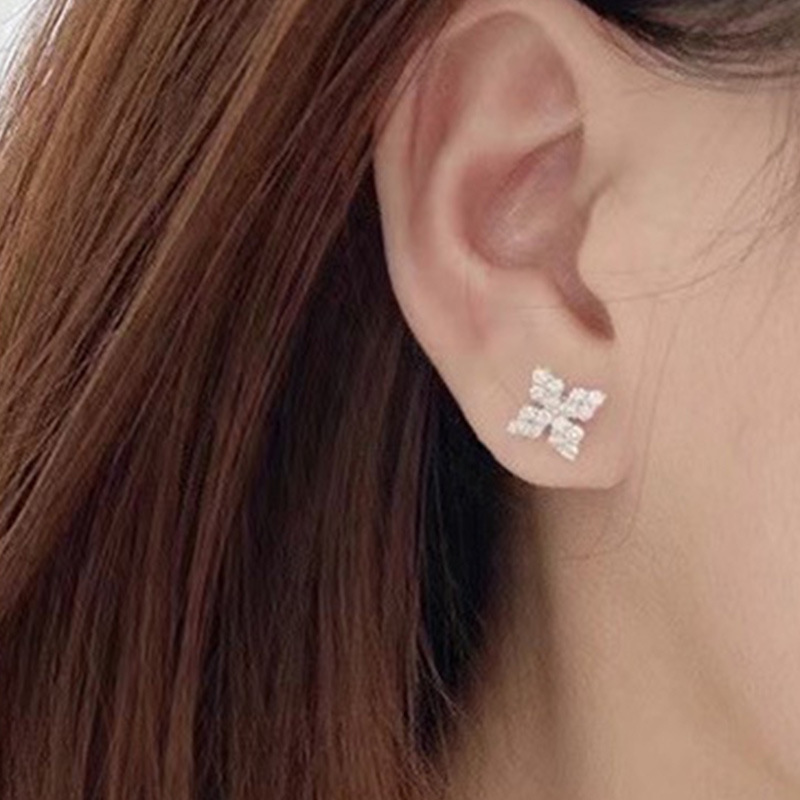 Hot selling fashion simple four-leaf clover zircon earrings elegant flower earrings