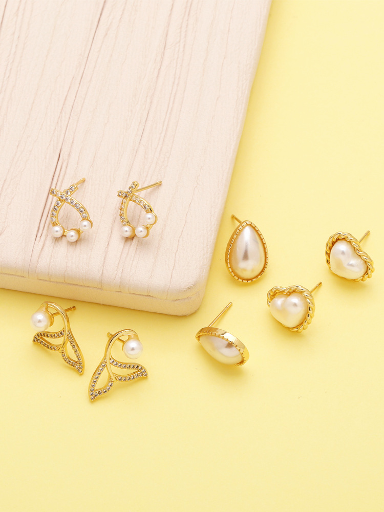 Hot selling fashion simple love pearl earrings copper plated 18k gold water drop butterfly earrings earrings eru74