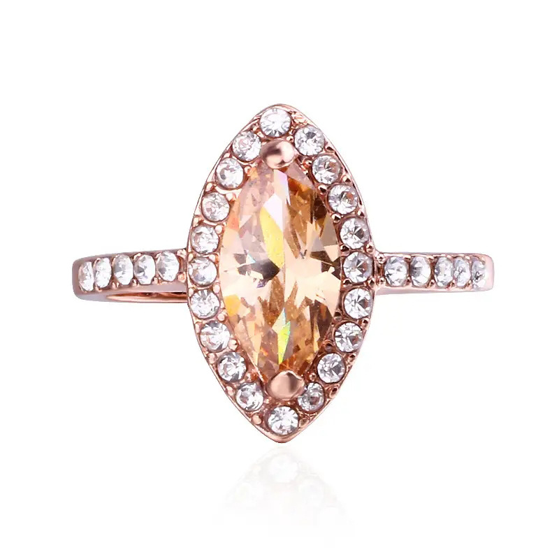 Hot selling fashionable women's European and American zircon ring inlaid with pink marquise-shaped engagement ring factory wholesale