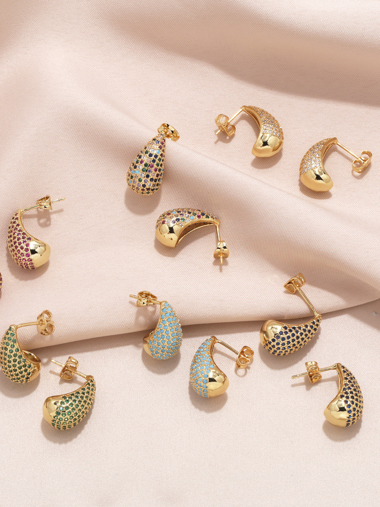Hot selling full diamond earrings for women temperament versatile water drop fashion gold-plated earrings earrings accessories ers34