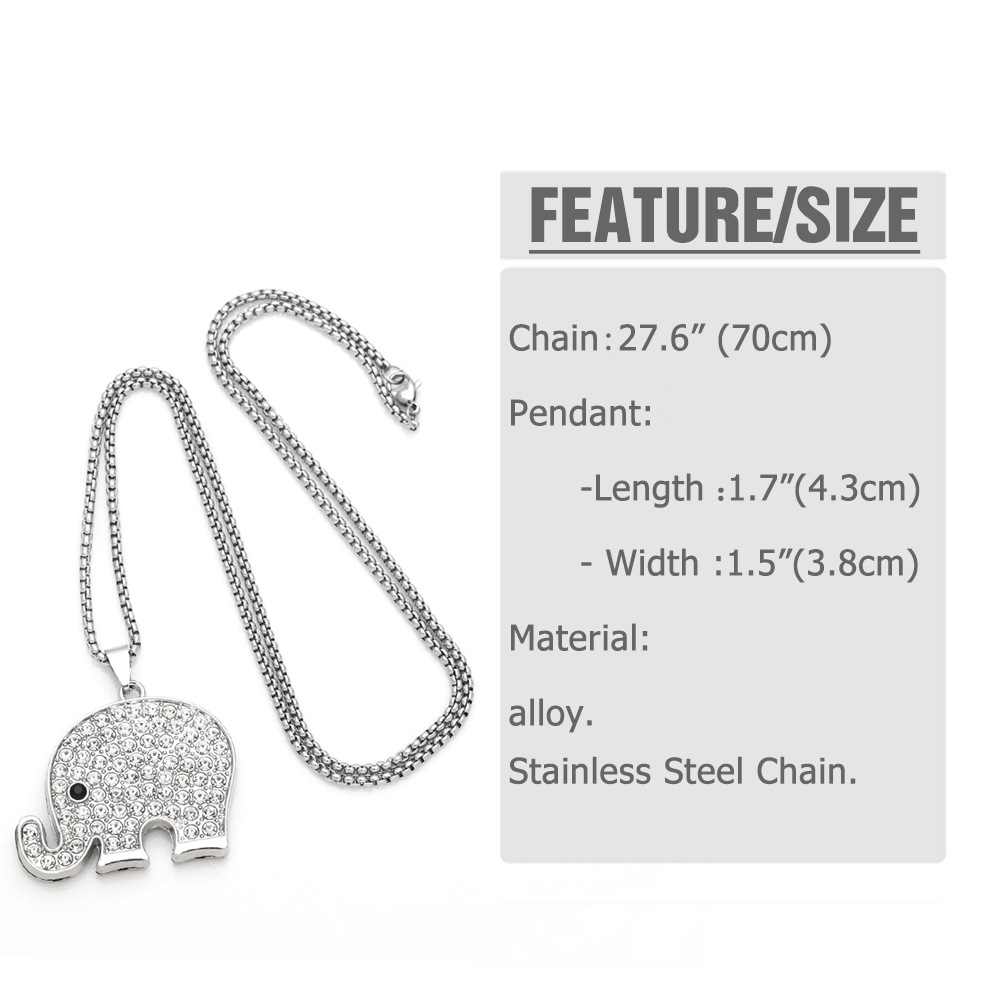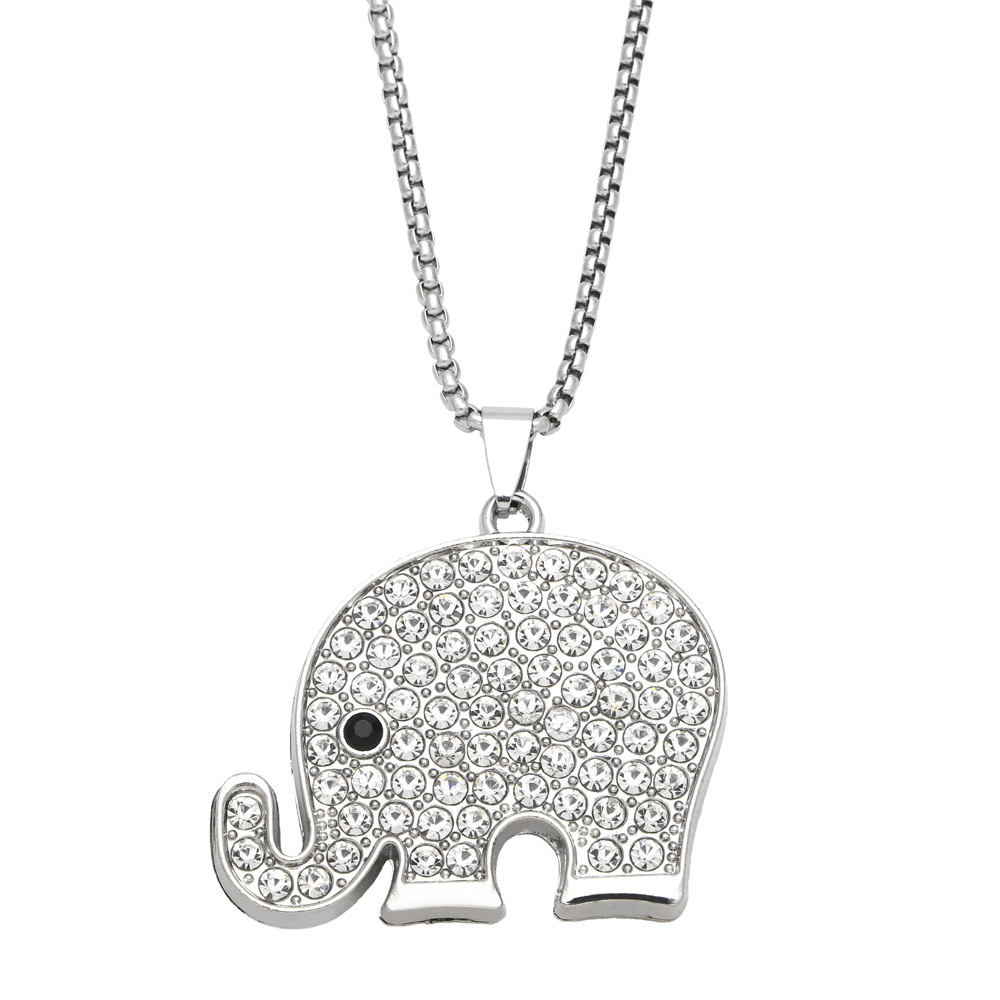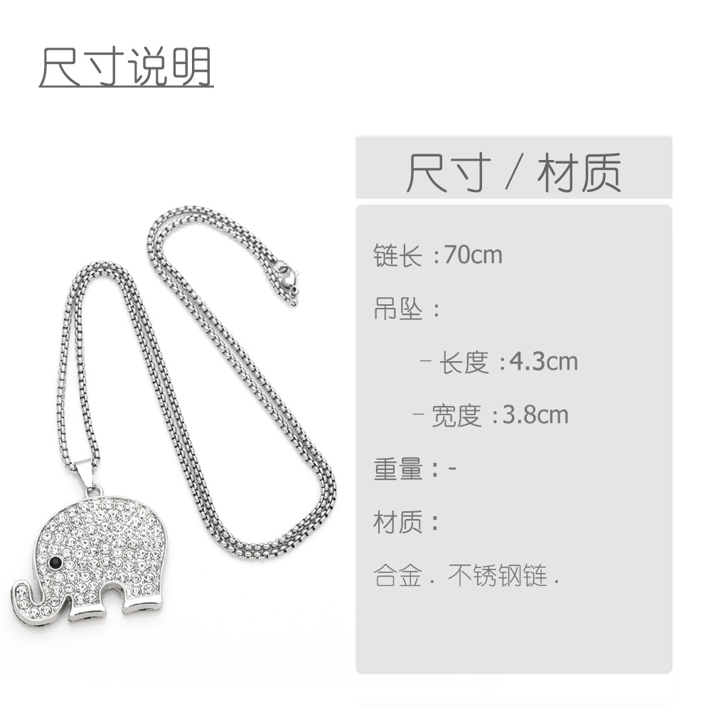 Hot selling full diamond elephant pendant hip hop trend men and women couple necklace versatile long sweater chain nkb248