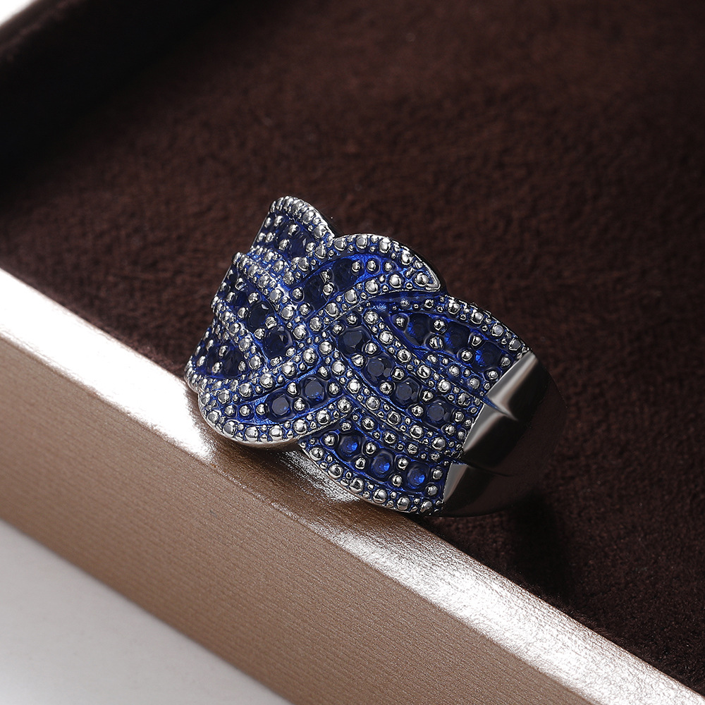 Hot selling full-set sapphire zircon ring European and American women's exaggerated engagement ring
