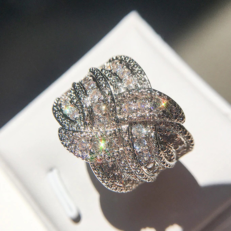 New zircon ring hollow cross four claws fashion design proposal wedding ring birthday gift ring