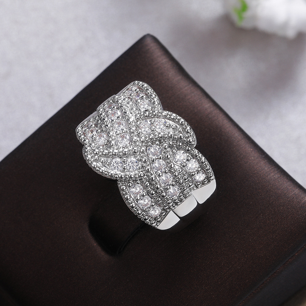 Classic four-claw imitation zircon micro-inlaid ring women's double row two-color twist arm ring engagement wedding ring women