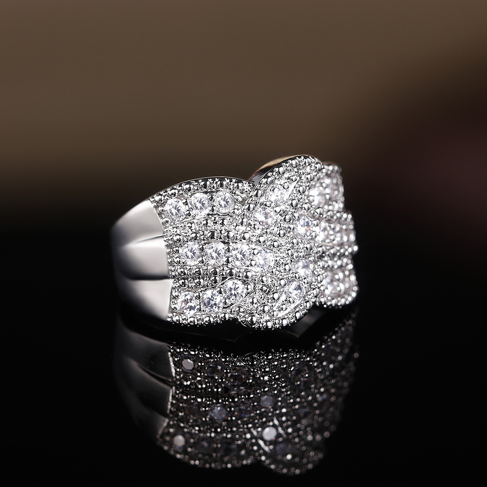 Micro-inlaid celebrity style classic all-match popular ring six-claw zircon wedding ring European and American style light luxury ring