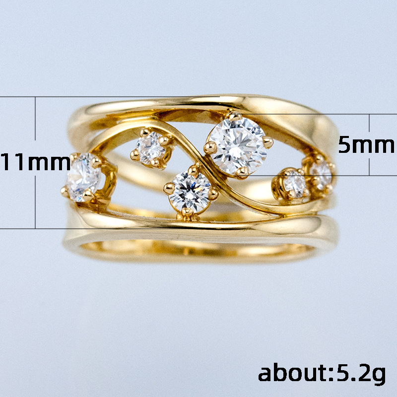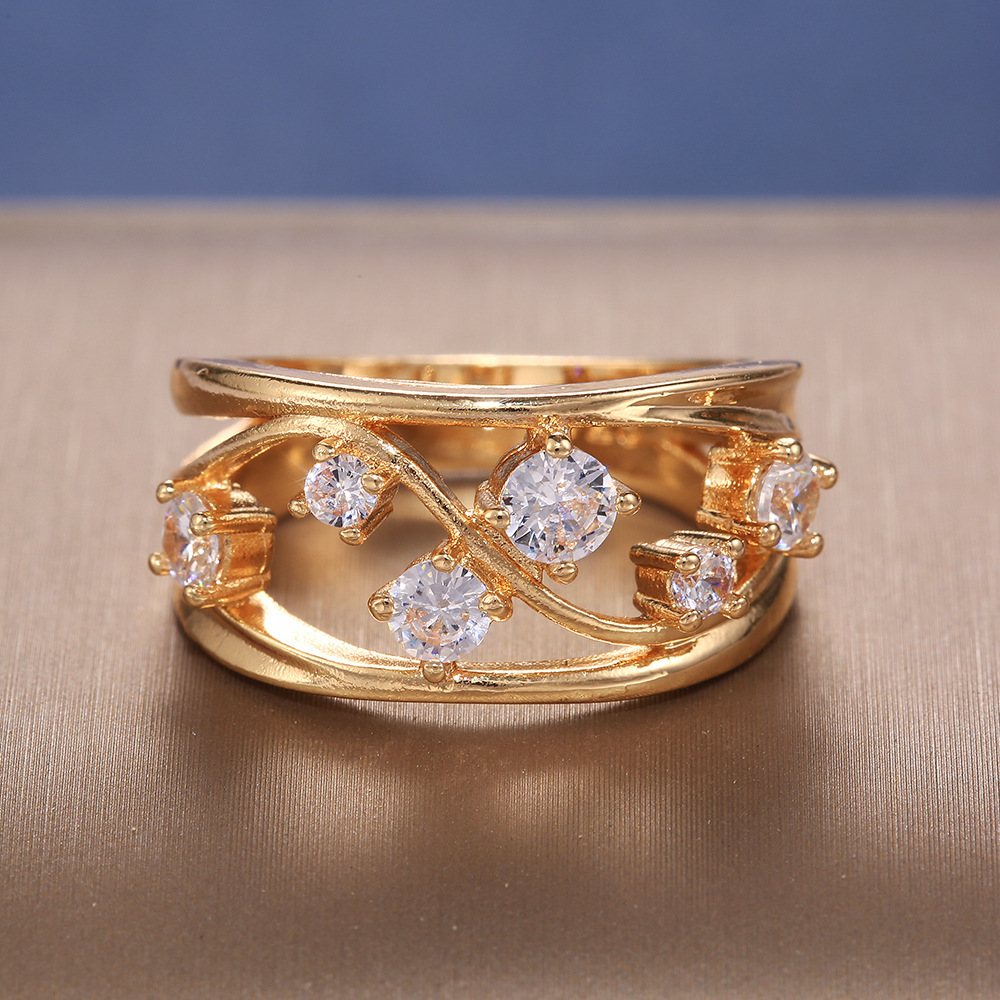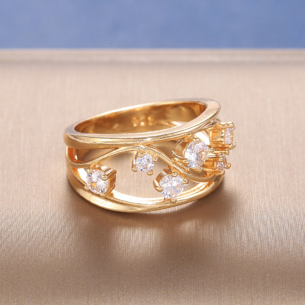 Hot selling gold exquisite zircon inlaid women's ring wave geometric line ring spot wholesale