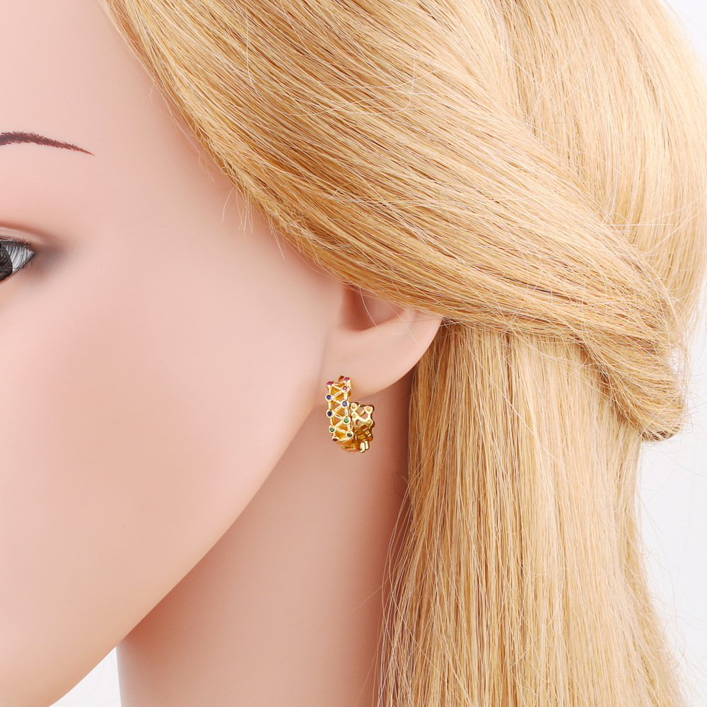 Hot selling gold-plated fashion earrings personality creative inlaid with colorful zircon high-end earrings erw53