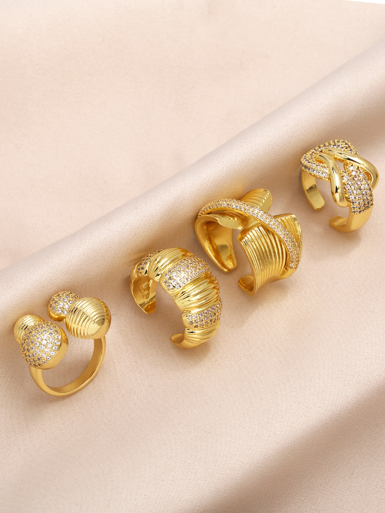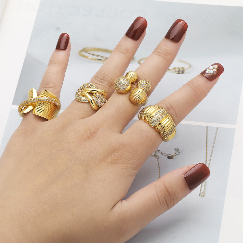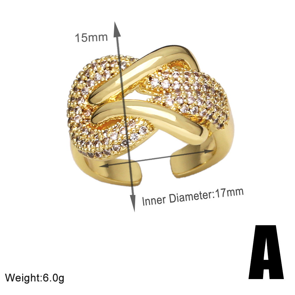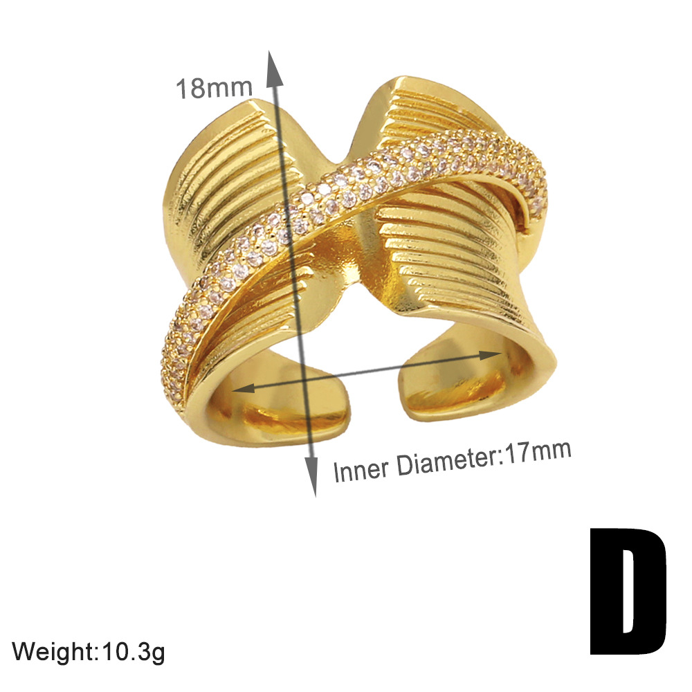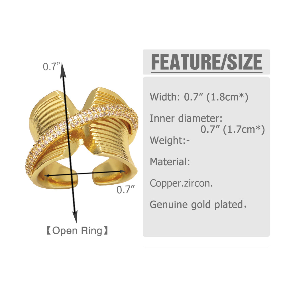 Hot selling gold-plated zircon round ring female versatile retro high-end cross open ring riq60
