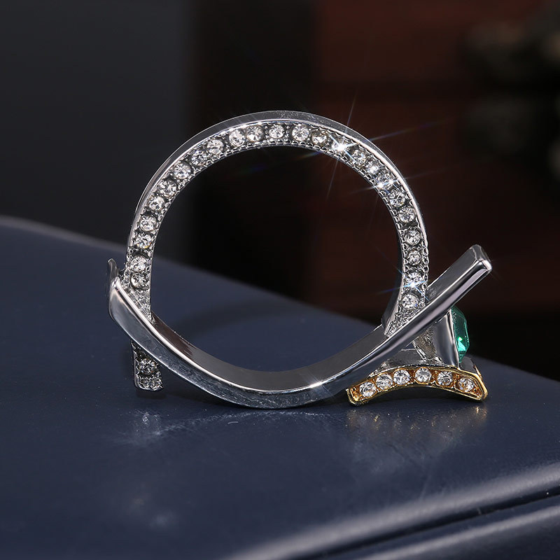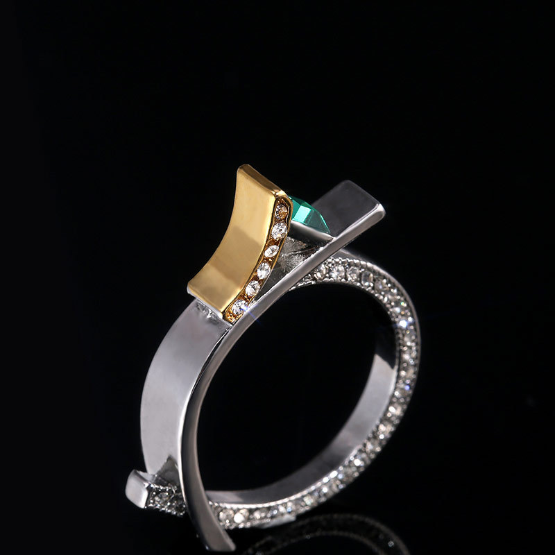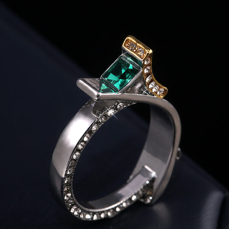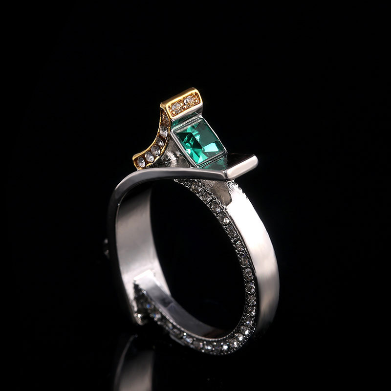 Hot selling green crystal princess diamond ring European and American creative micro-inlaid simulated diamond two-tone ring