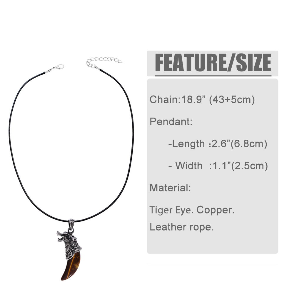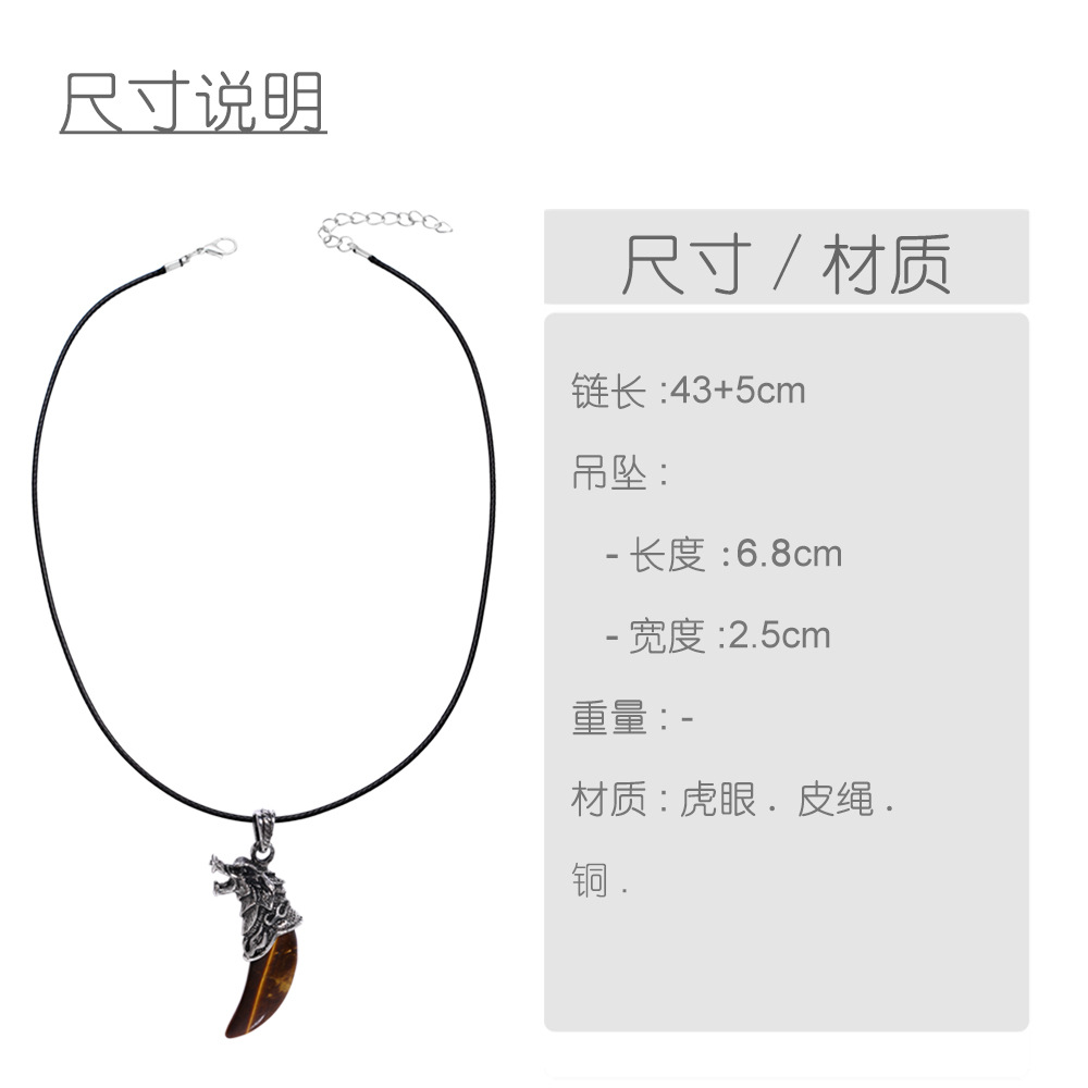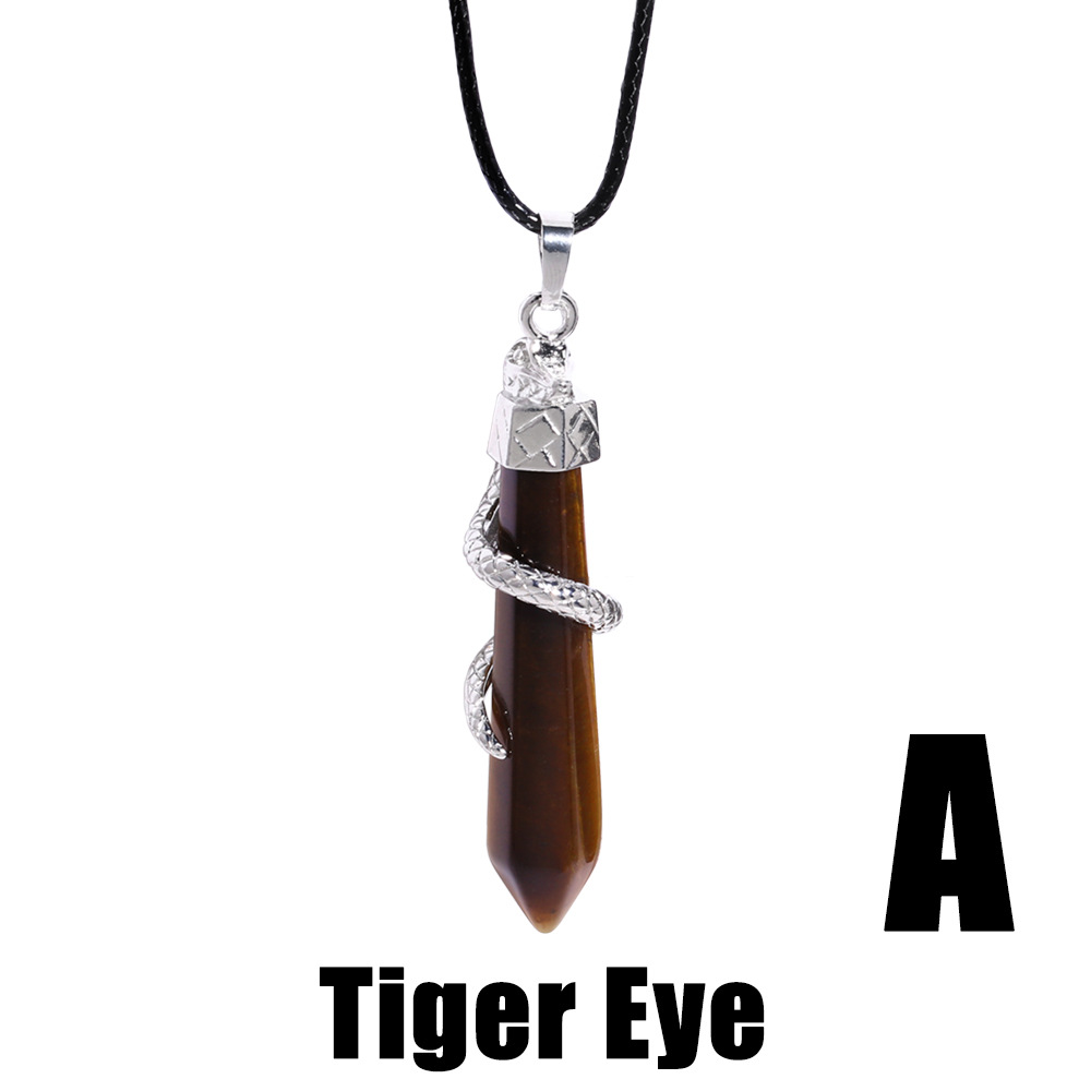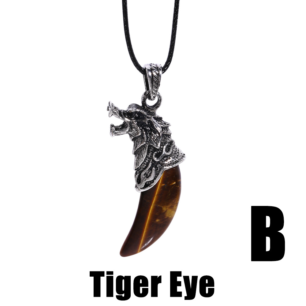 Hot selling hexagonal column tiger eye stone necklace in Europe and America, personalized and domineering wolf head and snake head pendant necklace wholesale nkb661