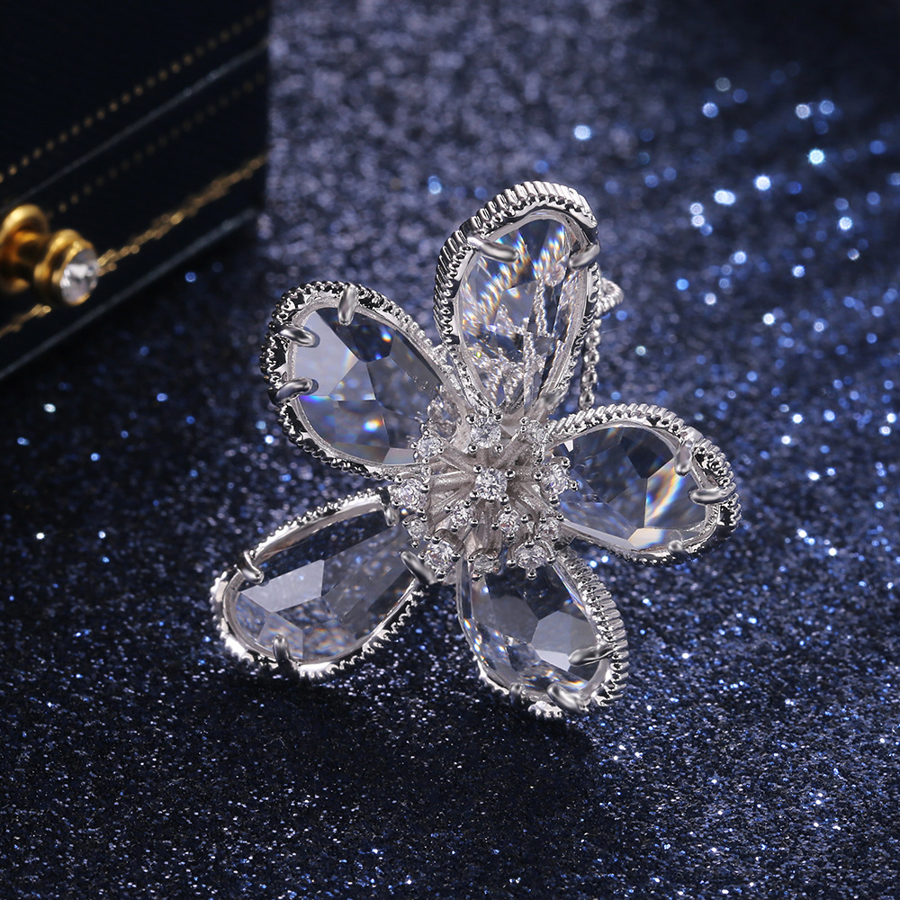 New zircon ring hollow cross four claws fashion design proposal wedding ring birthday gift ring