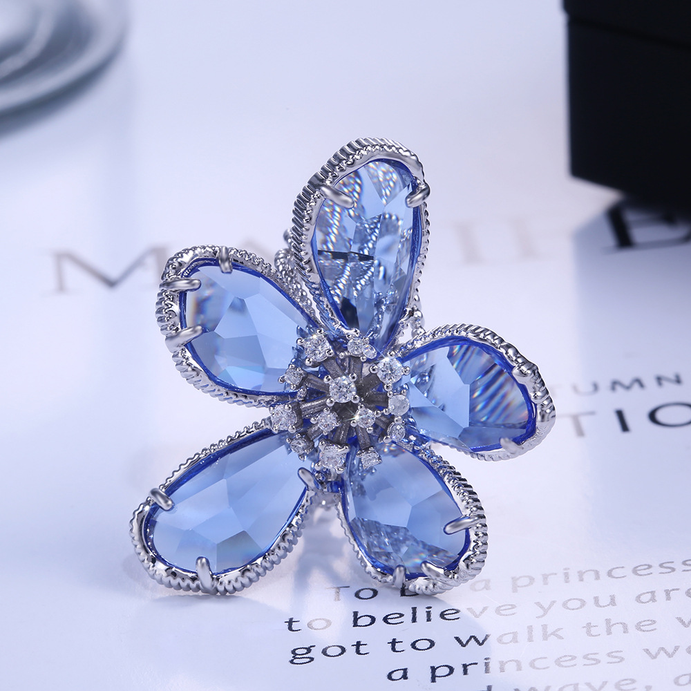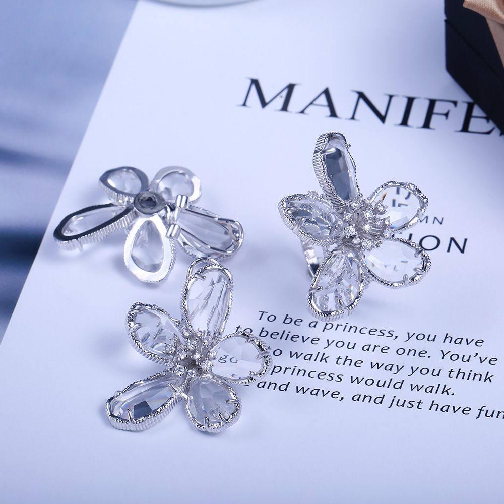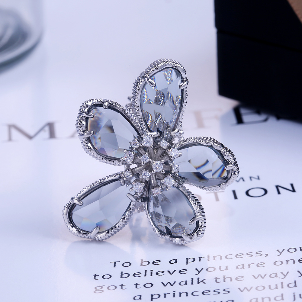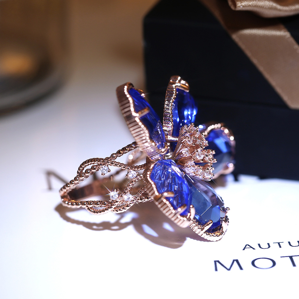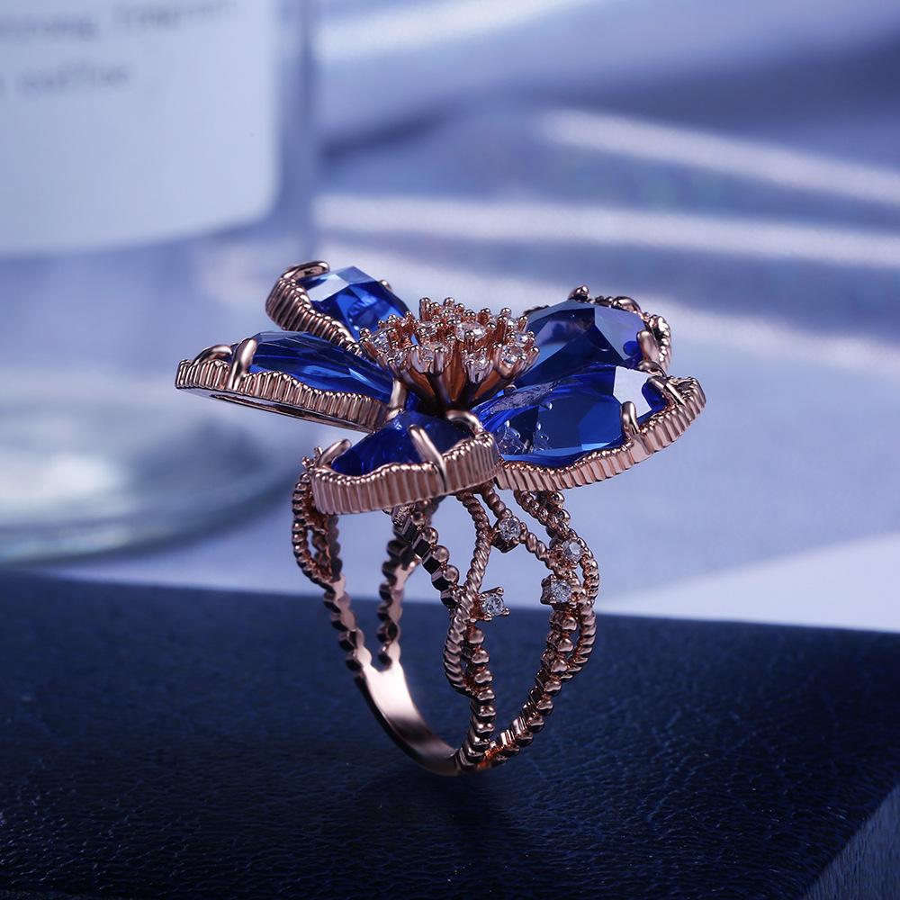 Hot selling high-end luxury women's flower rings in Europe and the United States, real gold color preservation and exaggerated French lady rings
