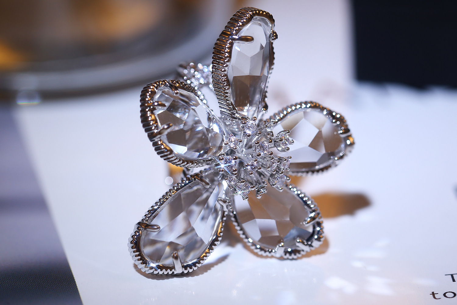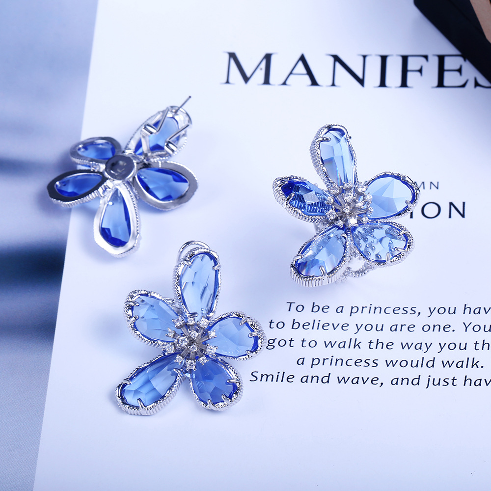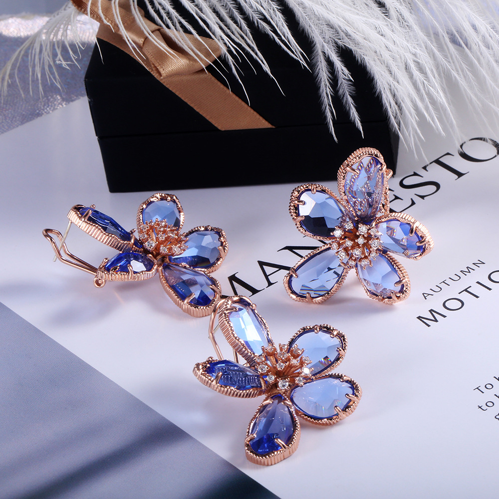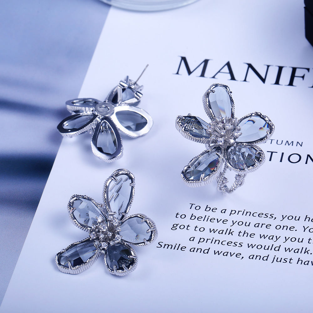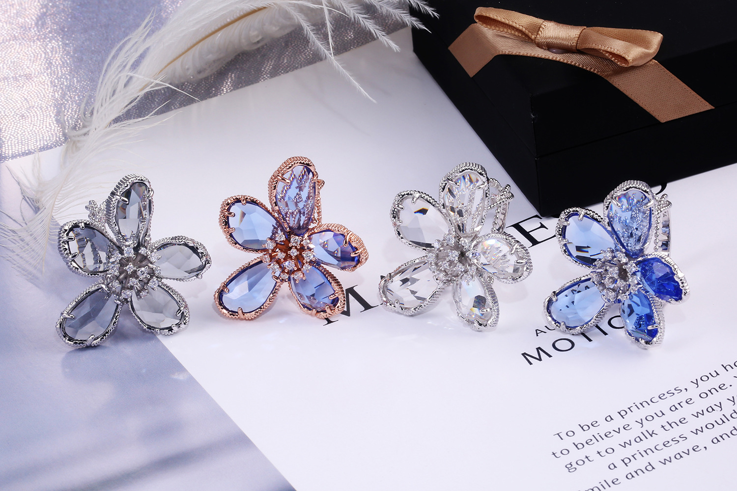 Hot selling high-end luxury women's flower rings in Europe and the United States, real gold color preservation and exaggerated French lady rings