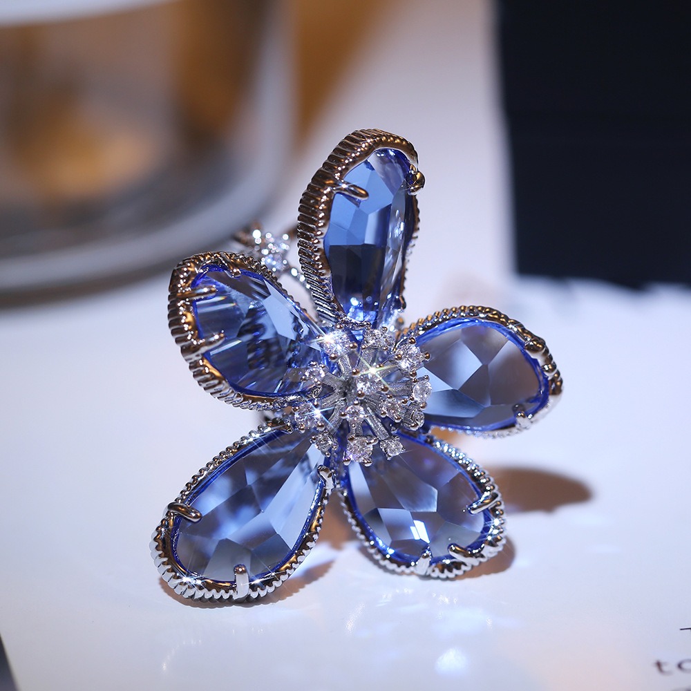 Small crown luxury French hot-selling water drop special flower floral ring temperament princess index finger ring