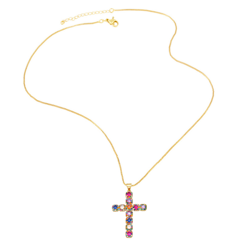 Hot selling hip-hop micro-inlaid colored zircon cross necklace net celebrity all-match clavicle chain nkb243