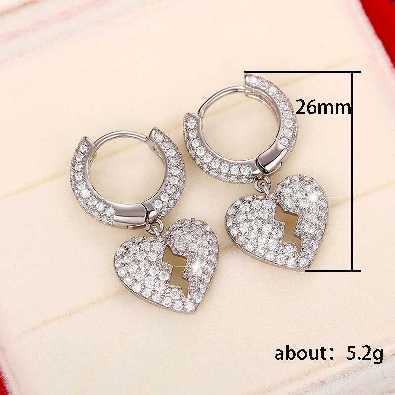Hot selling hiphop hip-hop full zircon heartbreak earrings personality earrings for men and women