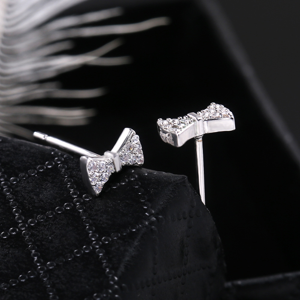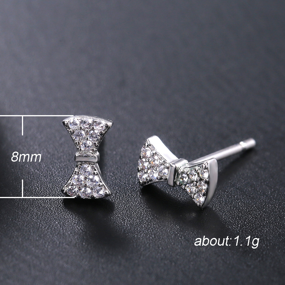 Hot selling hot item in Dongdaemun, Korea, sweet and cute bow-knot zircon earrings, fashionable and versatile earrings for girls