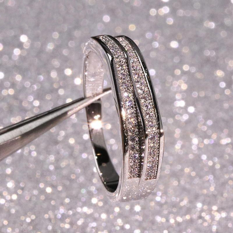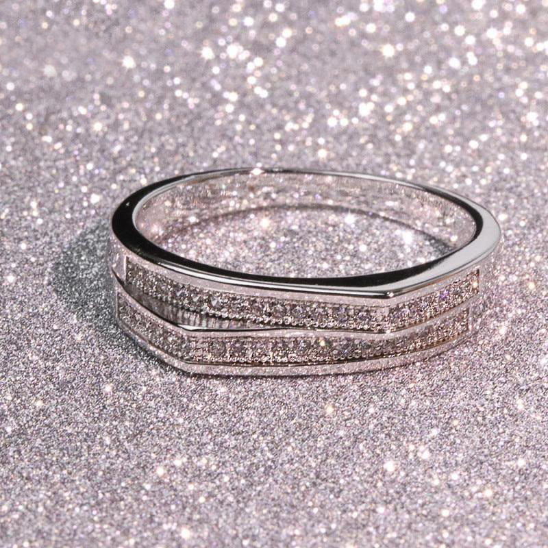 Classic four-claw imitation zircon micro-inlaid ring women's double row two-color twist arm ring engagement wedding ring women