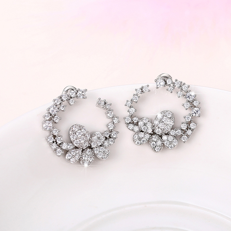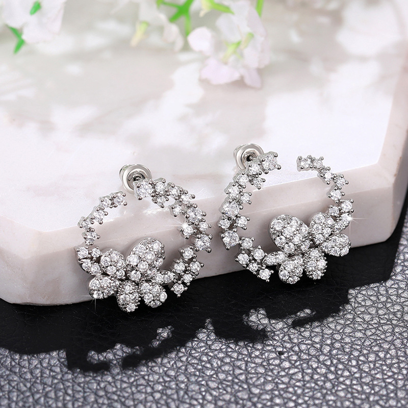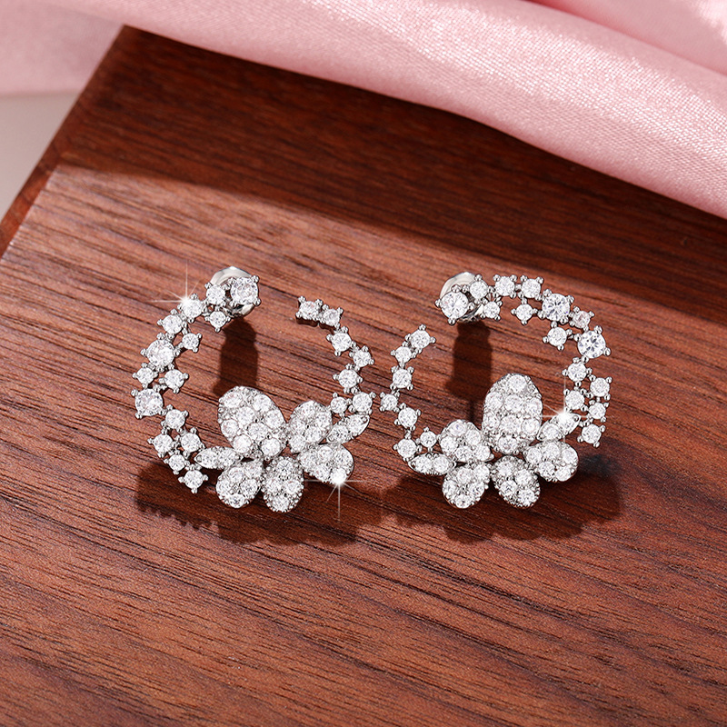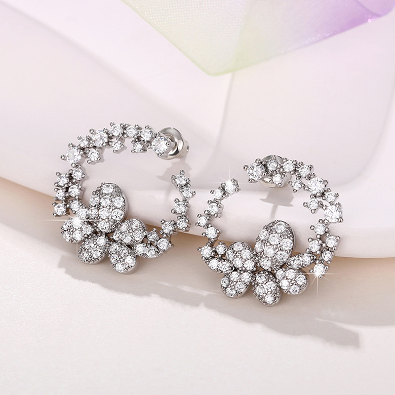 Hot-selling Japanese and Korean temperament flower circle earrings, fashionable hollow flower earrings
