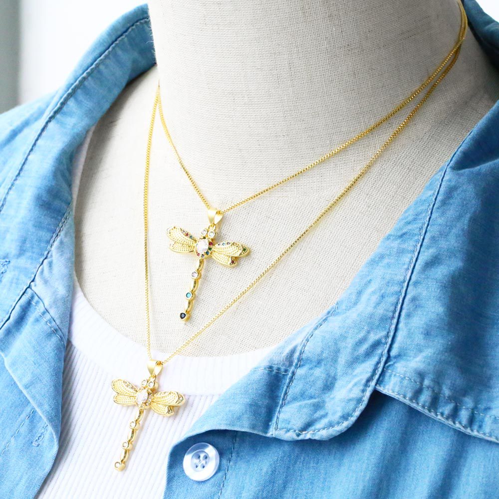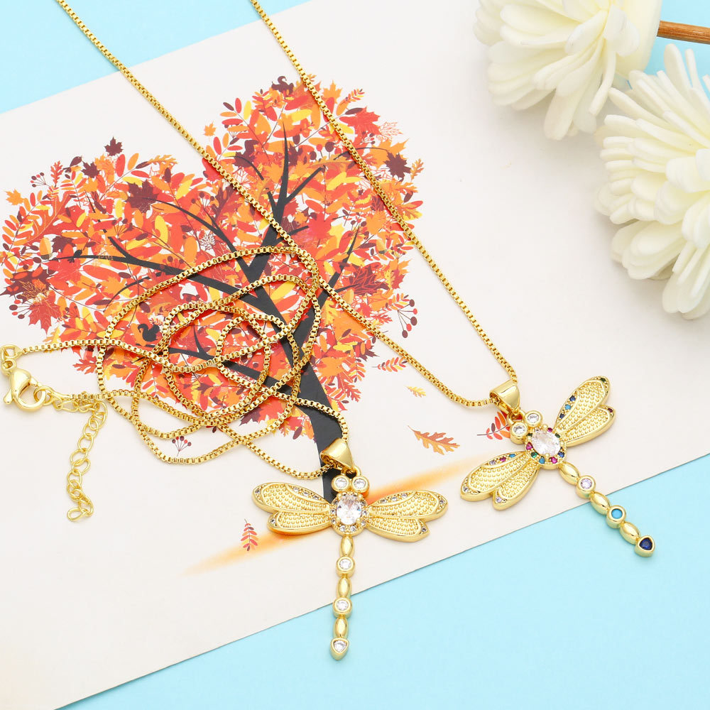 Hot selling jewelry European and American creative personality diamond dragonfly pendant necklace female fashion clavicle chain nkb541
