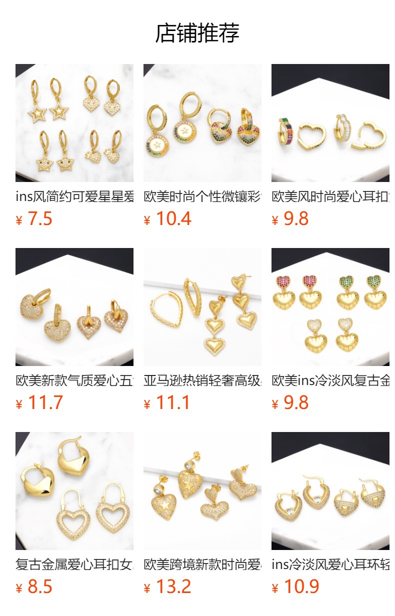 Hot selling jewelry European and American fashion simple love earrings female niche diamond heart-shaped earrings ert92