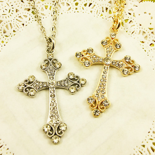 Hot selling jewelry European and American retro cross women's necklace jewelry inlaid with diamond crystal pendant nkh77