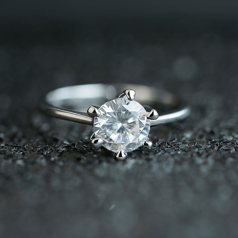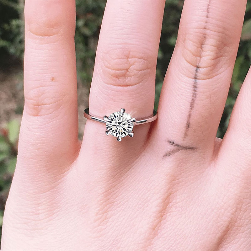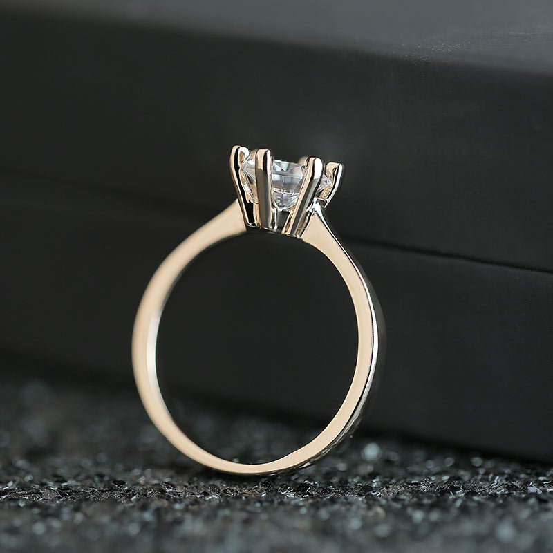 Micro-inlaid celebrity style classic all-match popular ring six-claw zircon wedding ring European and American style light luxury ring
