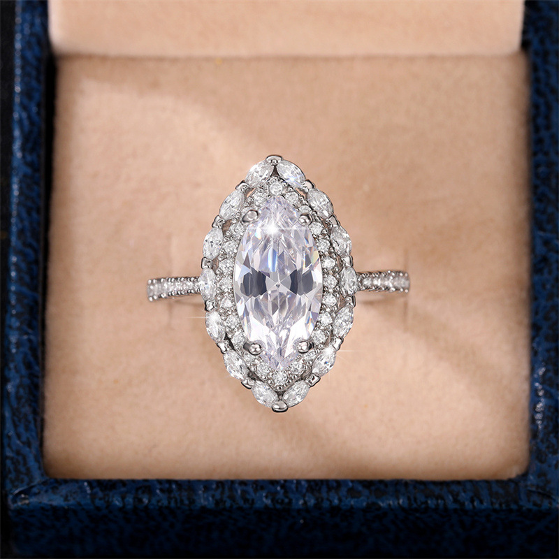 Hot selling jewelry olive-shaped marquise zircon ring women's light luxury women's ring wholesale