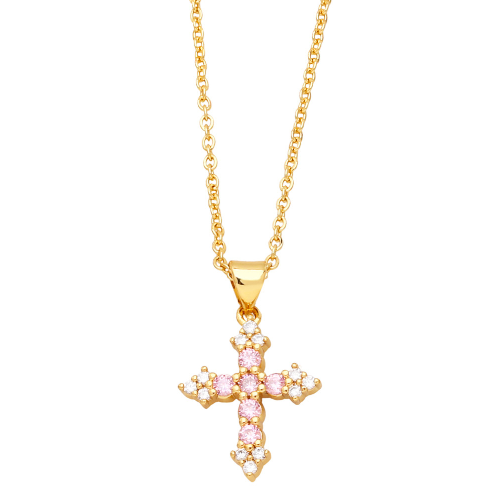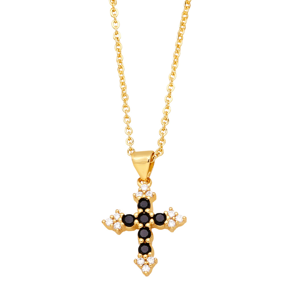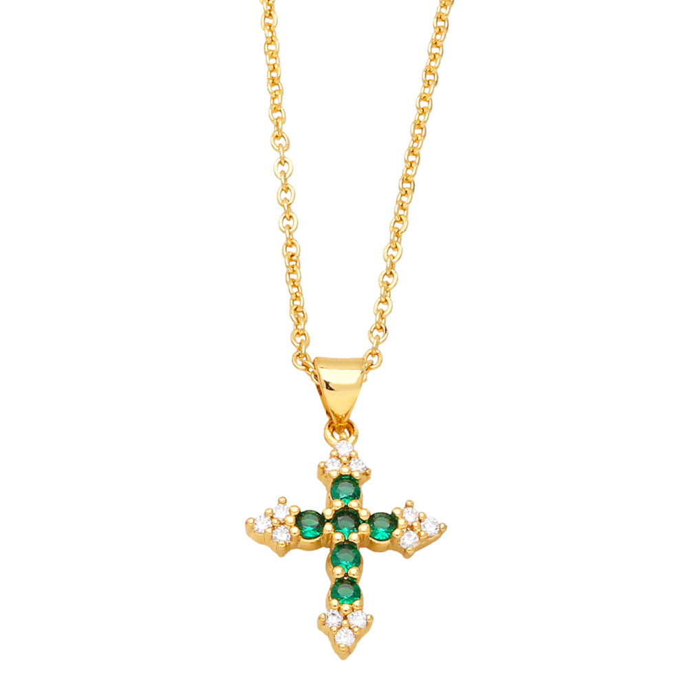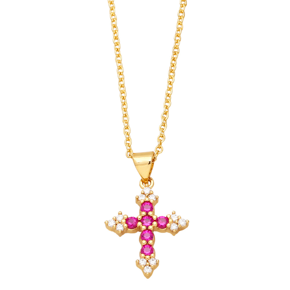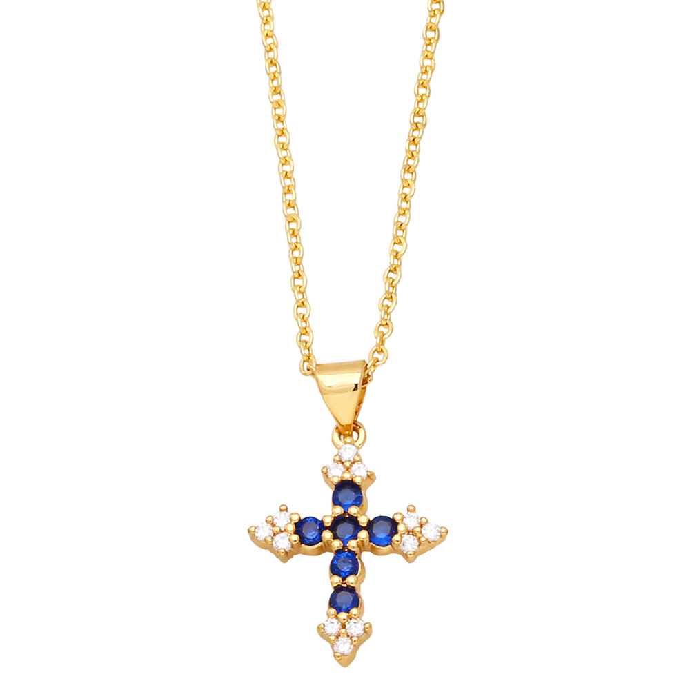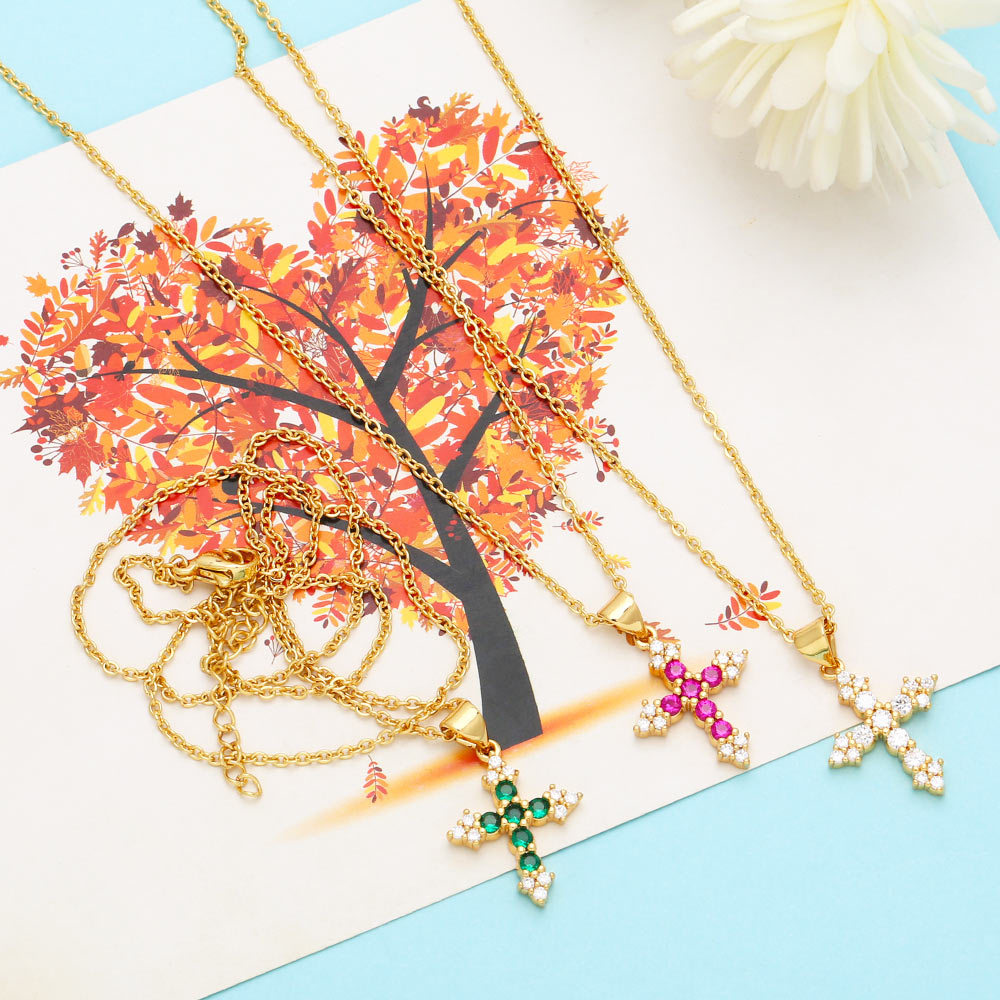 Hot selling jewelry personality color zircon cross pendant necklace female simple versatile clavicle chain nkb631